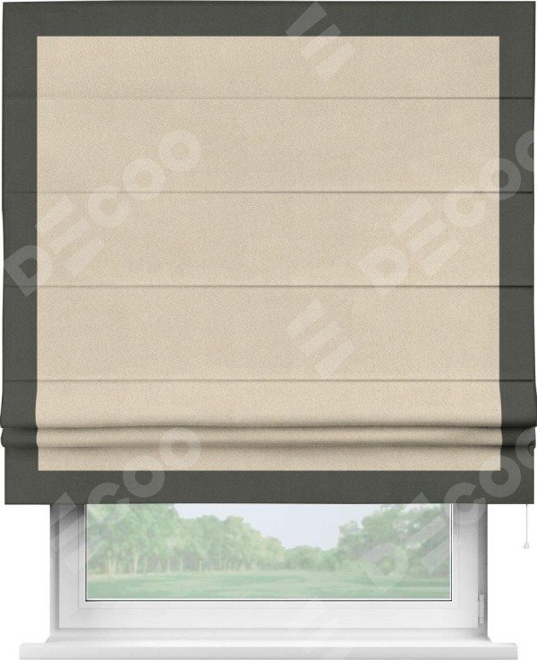 Римская штора «Cortin» для проёма, блэкаут однотонный кофейно-бежевый с кантом Чесс