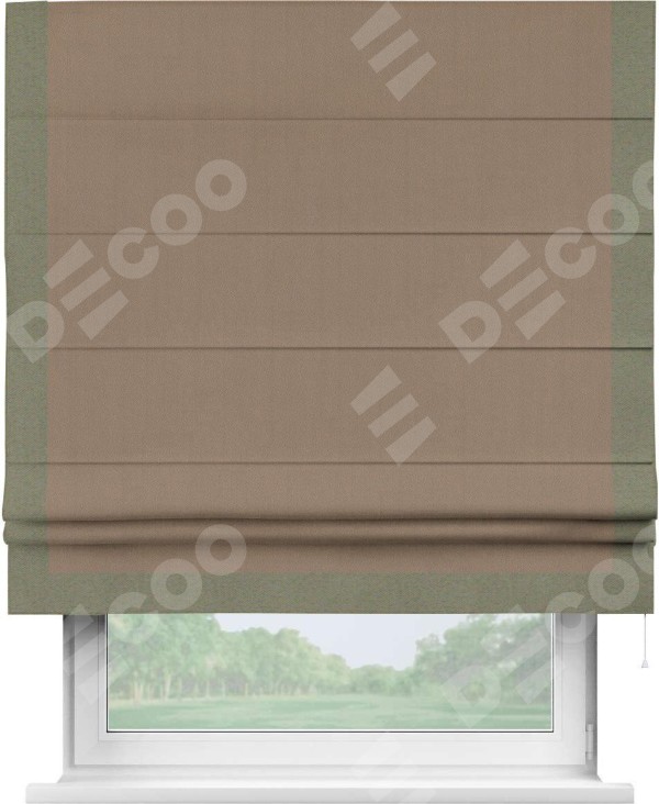 Римская штора «Cortin» для проёма, ткань блэкаут однотонный кофейно-бежевый с кантом Виктория