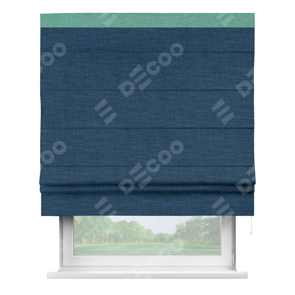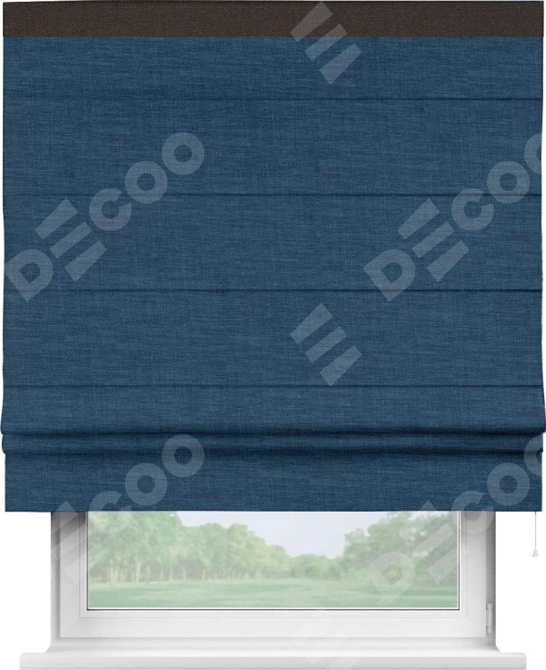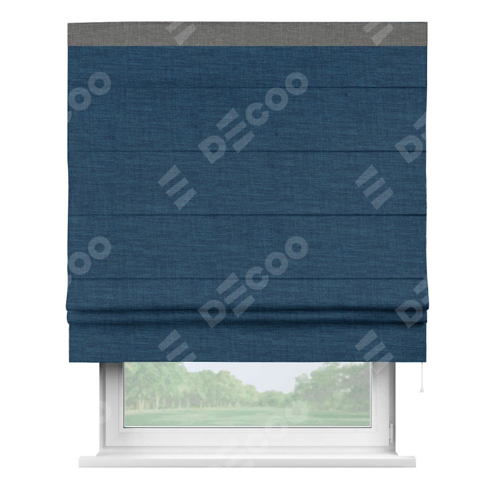 Римская штора «Кортин» для проёма, лён синий, с кантом Кинг