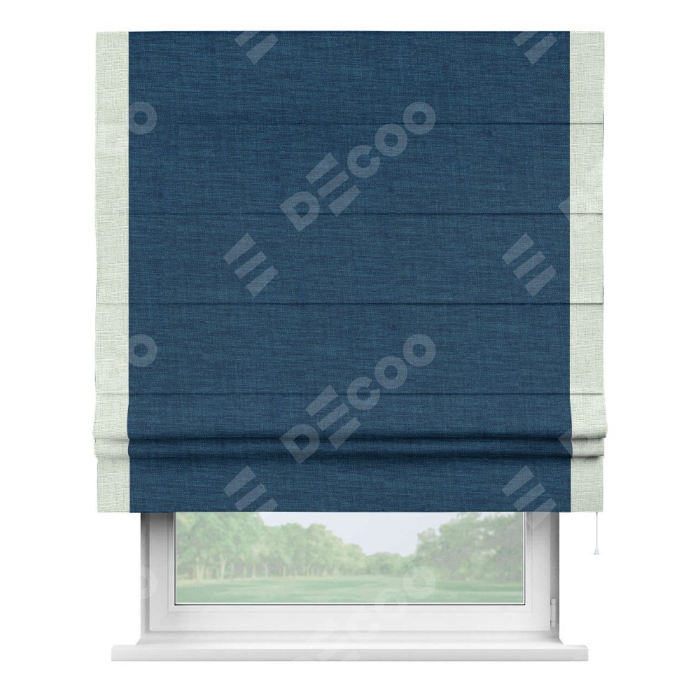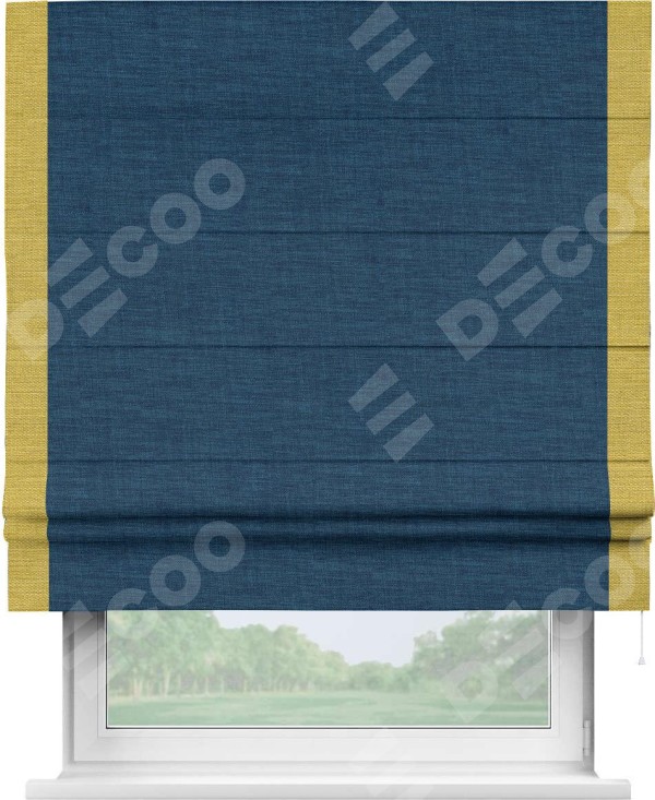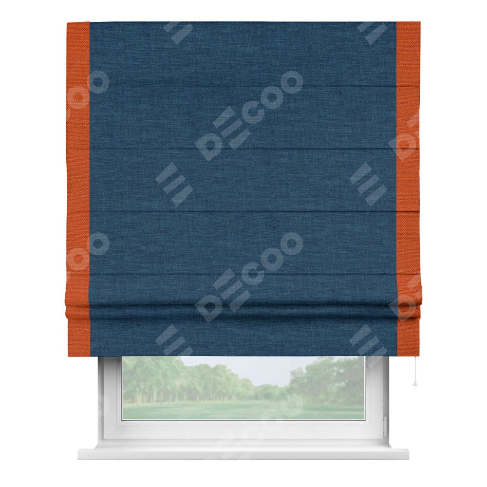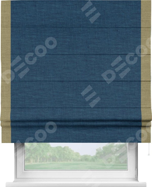 Римская штора «Кортин» для проёма, лён синий, с кантом Стрим Дуо