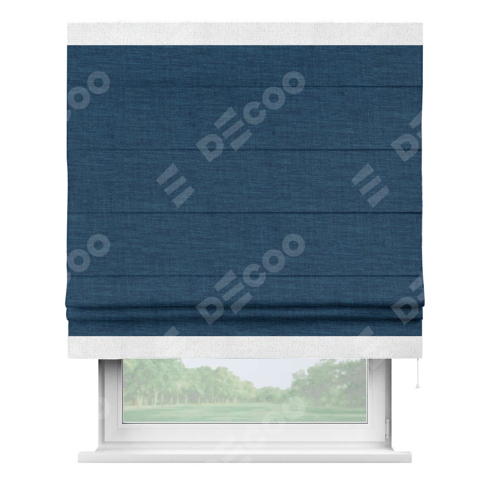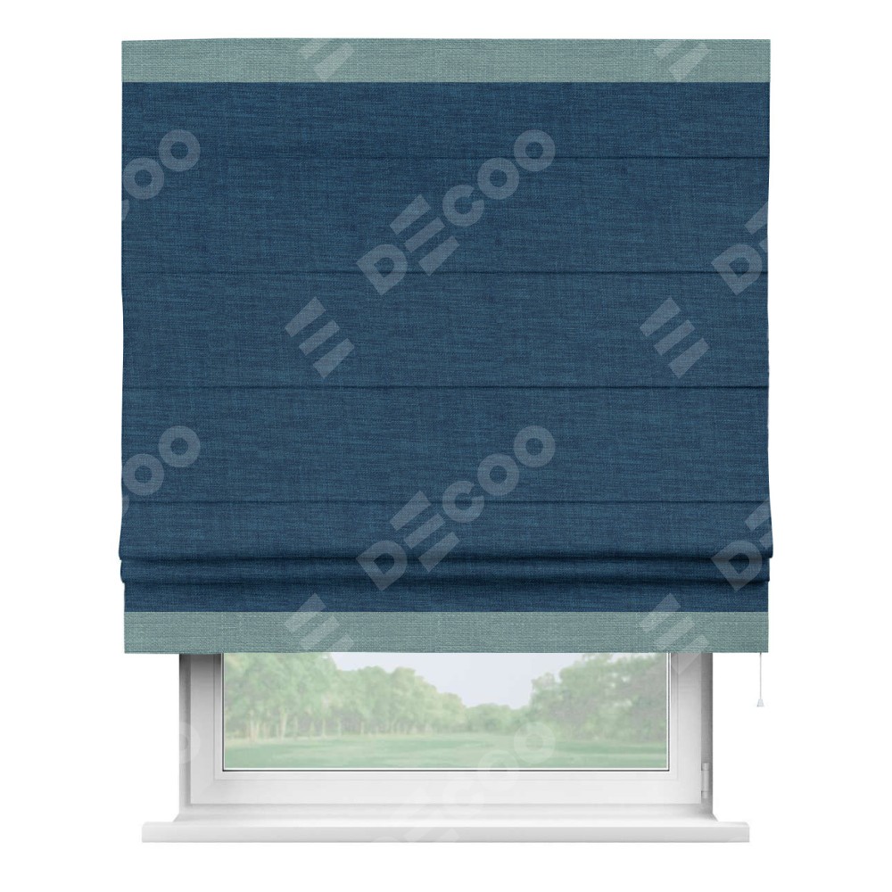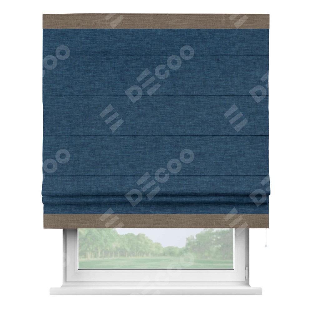 Римская штора «Кортин» для проёма, лён синий, с кантом Горизонт