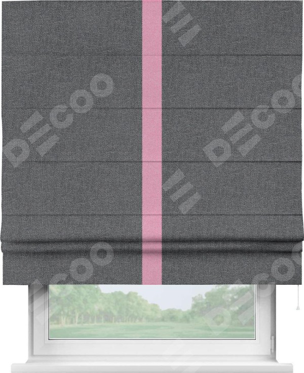 Классическая римская штора производителя «Cortin», пошита из ткани лён димаут графит, артикул: 140644. Имеет универсальный механизм и подходит для монтажа: на потолок, на стену и в нишу.