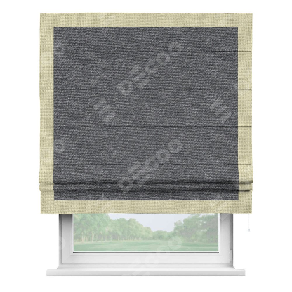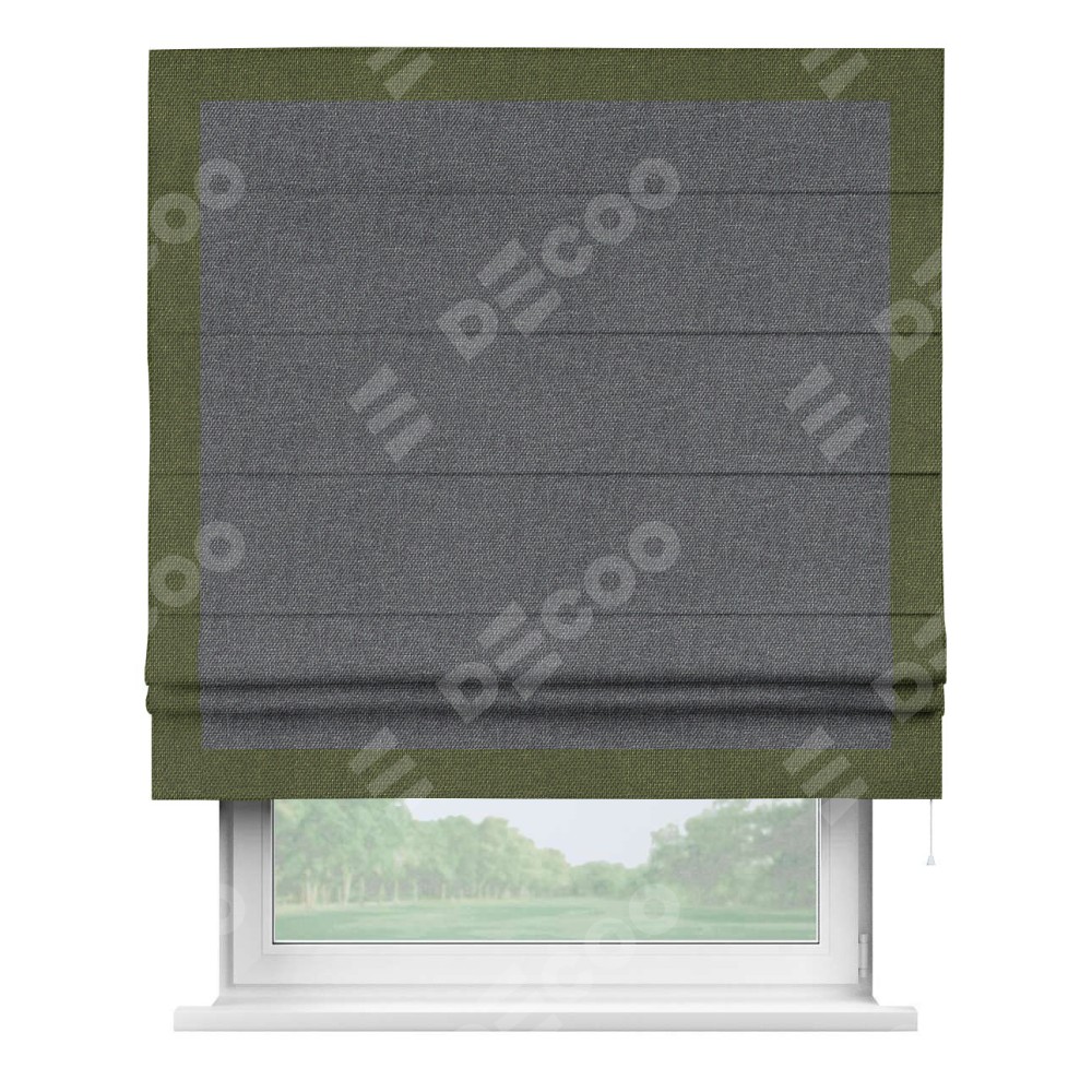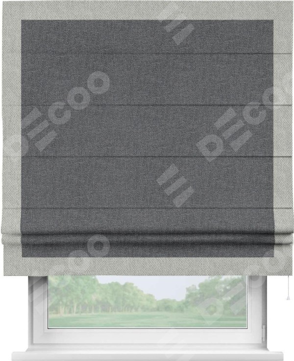 Римская штора «Кортин» для проёма, лён димаут графит с кантом Чесс