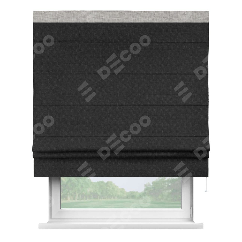 Римская штора «Кортин» для проёма, лён чёрный, с кантом Кинг