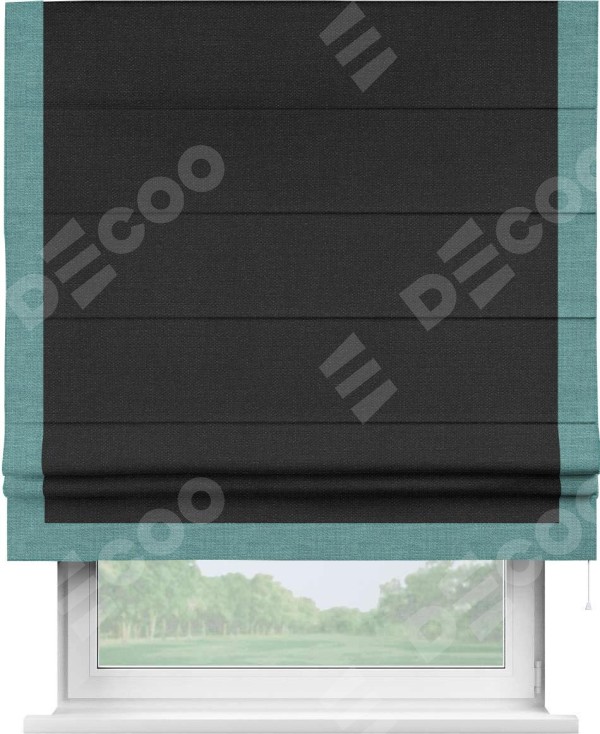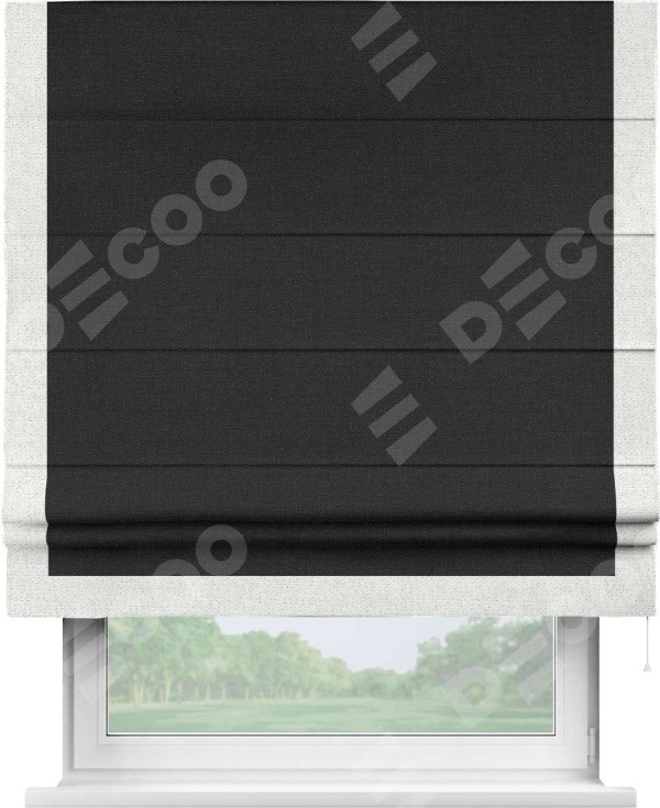 Римская штора «Кортин» для проёма, лён чёрный, с кантом Виктория