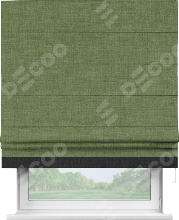 Римская штора «Кортин» для проёма, лён зелёный, с кантом Джестер