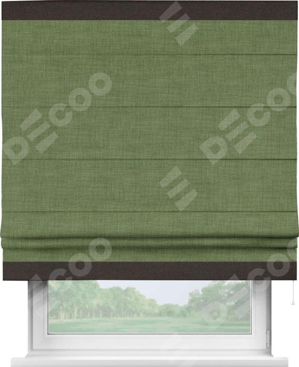 Римская штора «Кортин» для проёма, лён зелёный, с кантом Горизонт