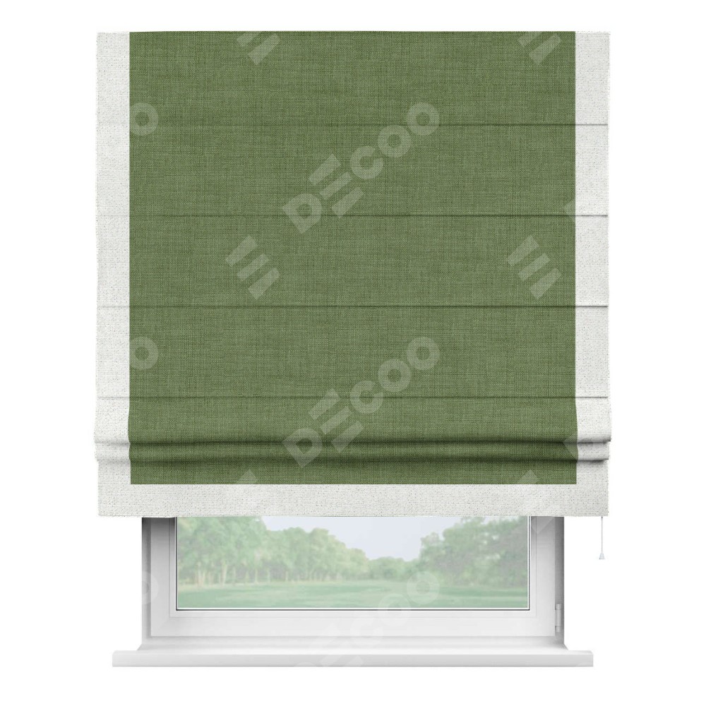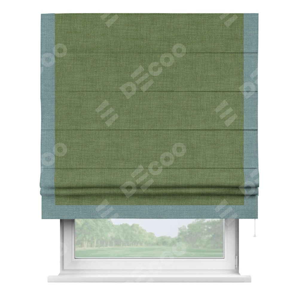 Римская штора «Кортин» для проёма, лён зелёный, с кантом Виктория