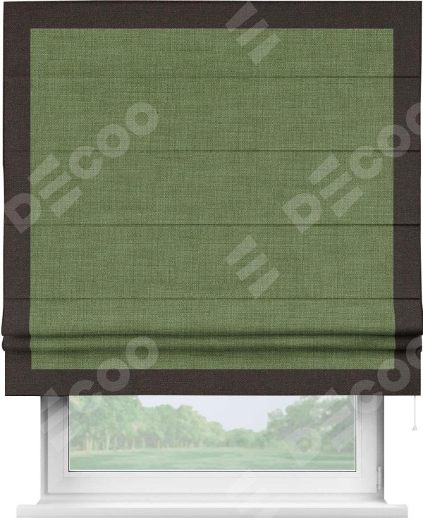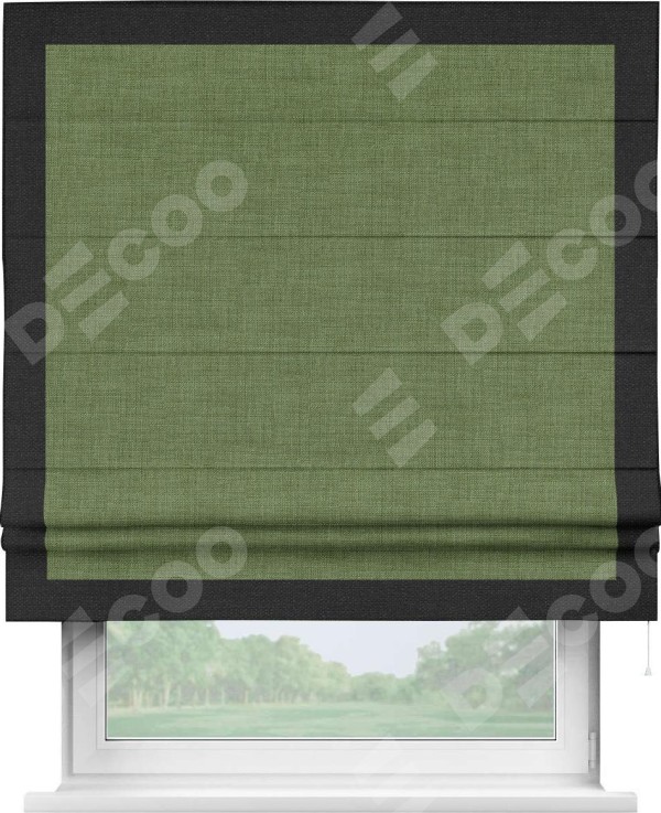 Римская штора «Кортин» для проёма, лён зелёный, с кантом Чесс
