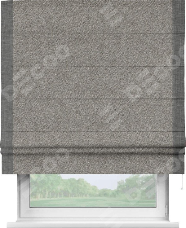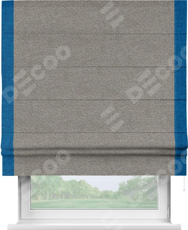 Римская штора «Кортин» для проёма, лён меланж натуральный, с кантом Стрим Дуо