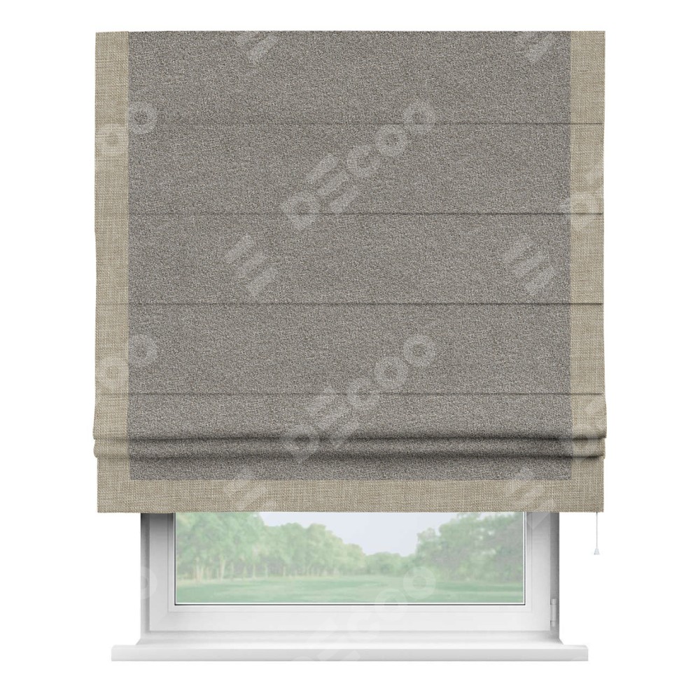 Римская штора «Кортин» для проёма, лён меланж натуральный, с кантом Виктория