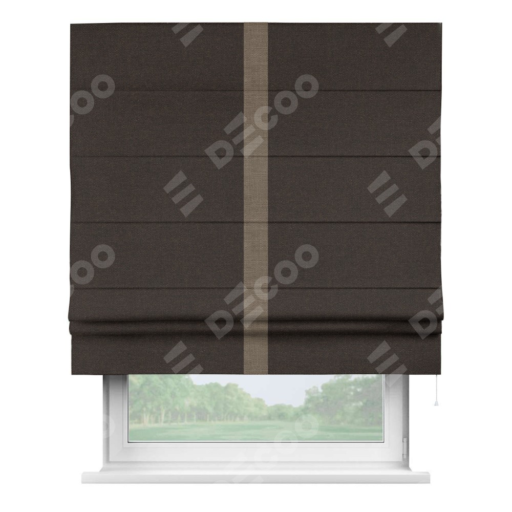 Римская штора «Кортин» для проёма, лён тёмно-коричневый, с кантом Хайвэй