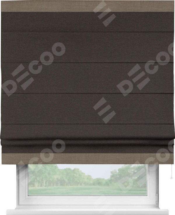Римская штора «Кортин» для проёма, лён тёмно-коричневый, с кантом Горизонт