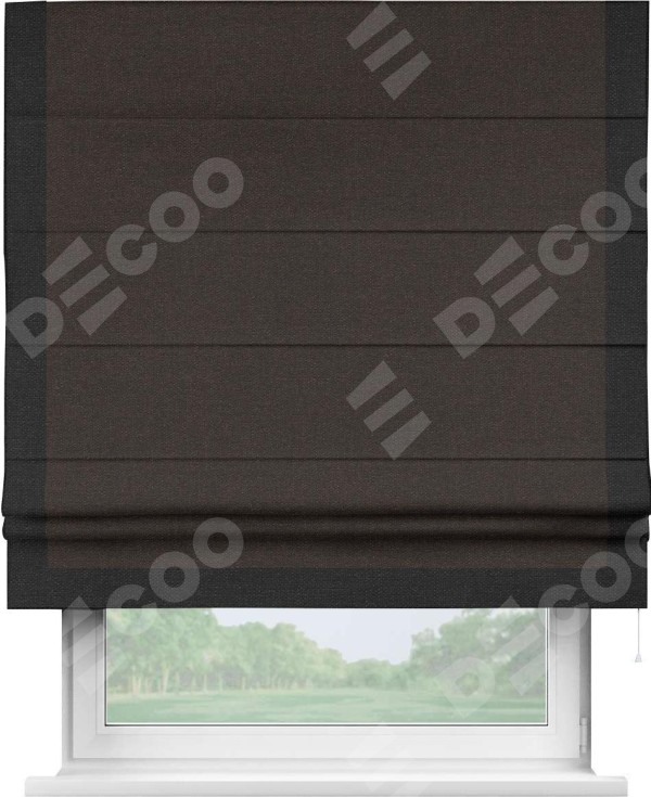 Римская штора «Кортин» для проёма, лён тёмно-коричневый, с кантом Виктория