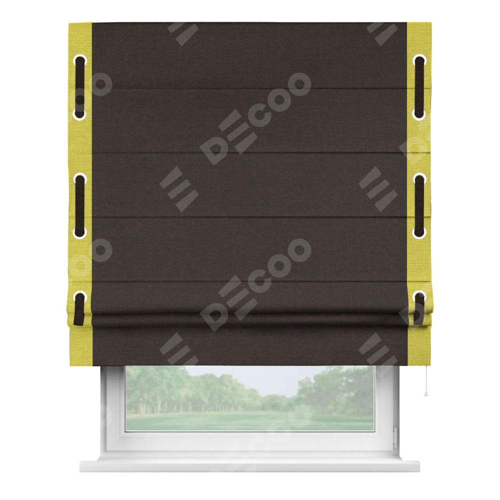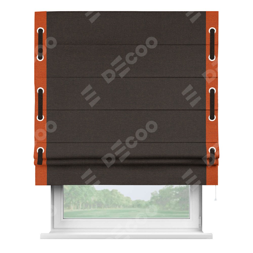 Римская штора «Кортин» для проёма, лён тёмно-коричневый, с кантом Стрим Дуо (люверсы с пояском)