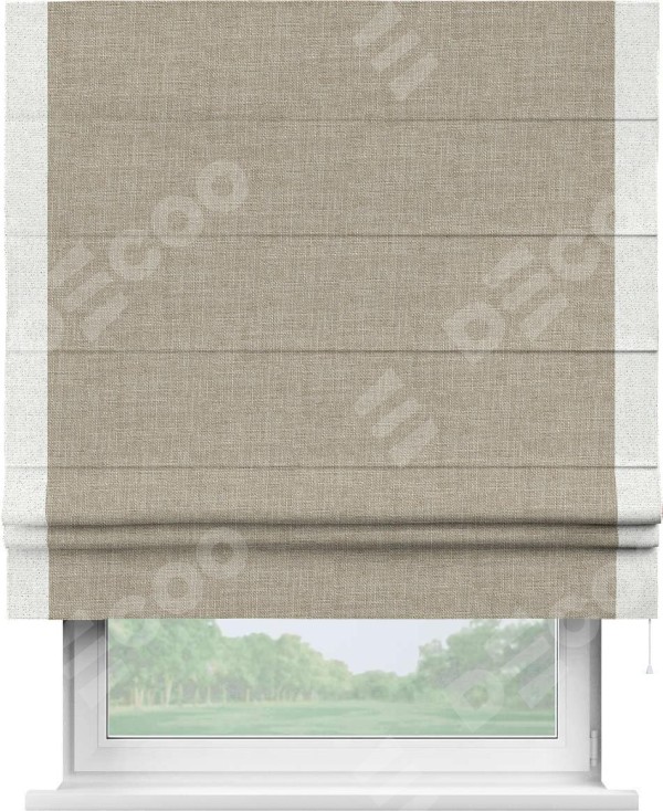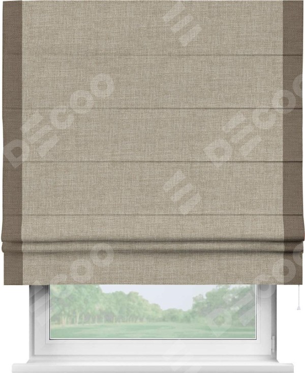 Римская штора «Кортин» для проёма, лён бежевый, с кантом Стрим Дуо