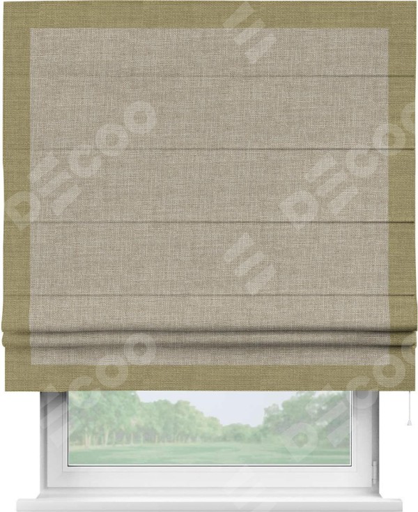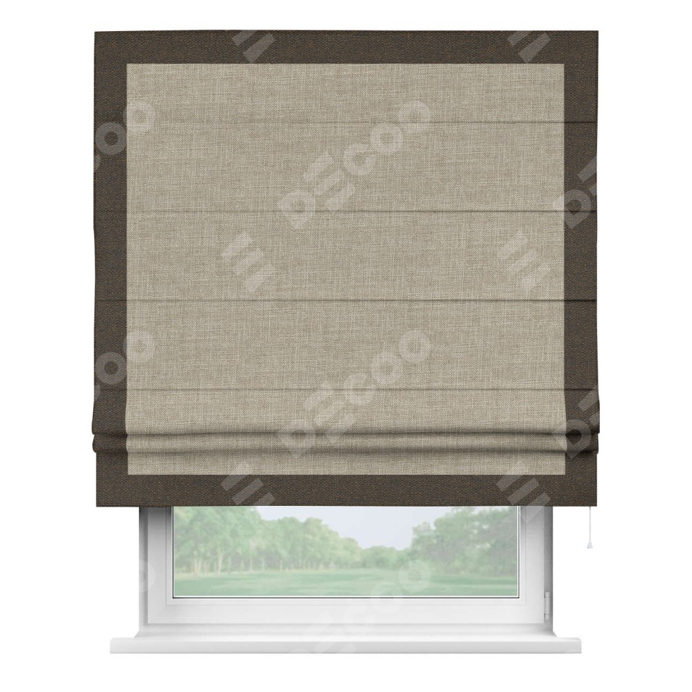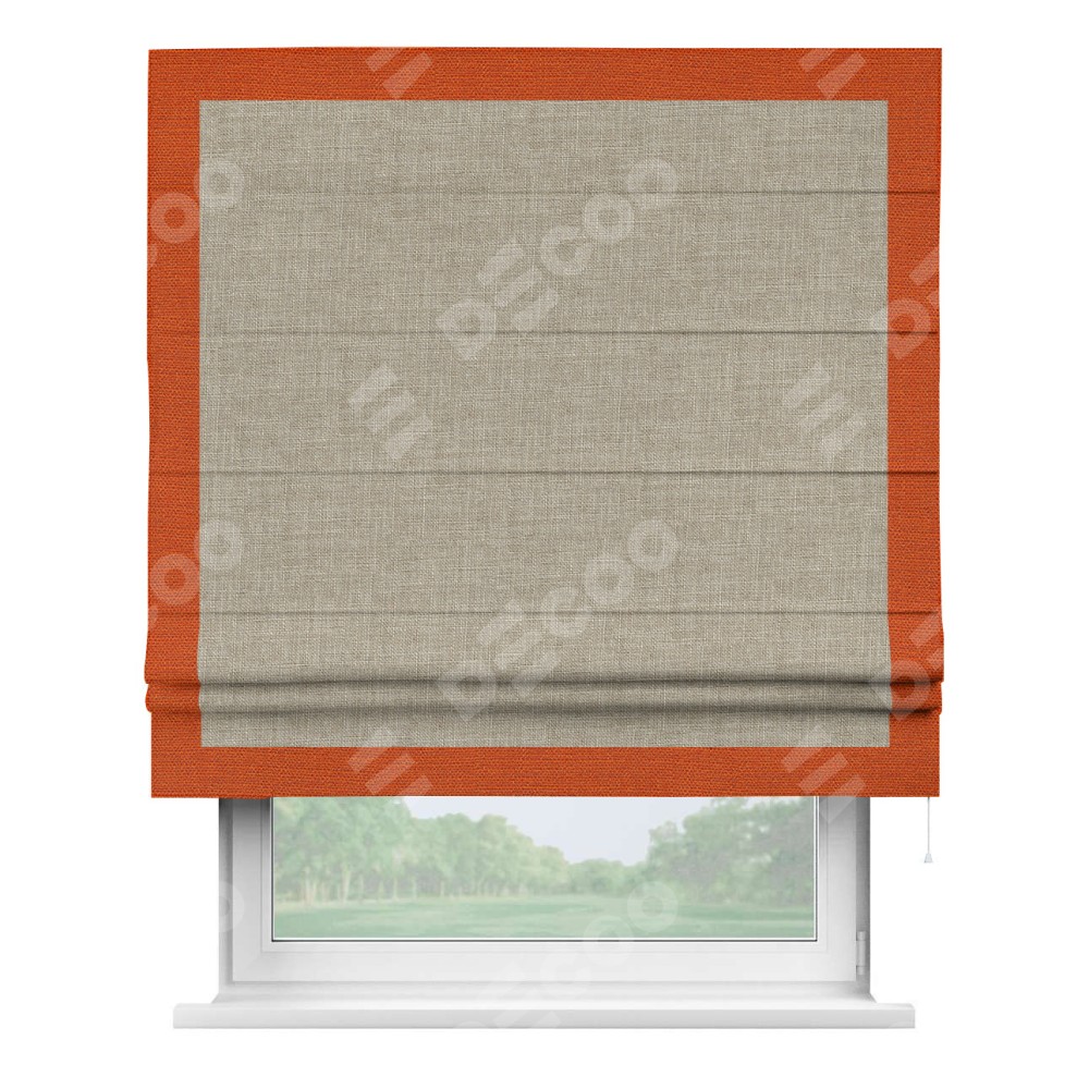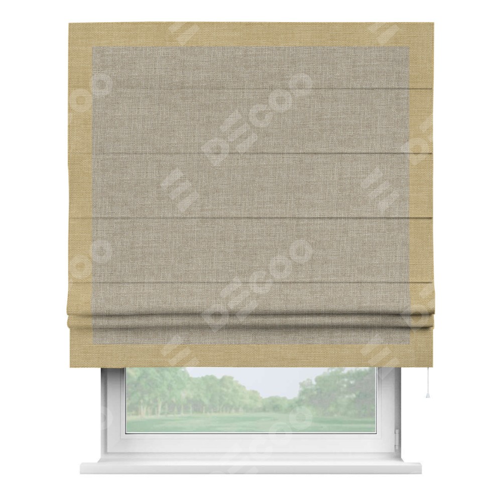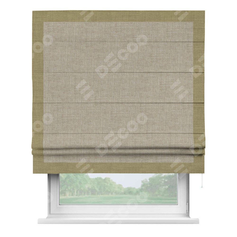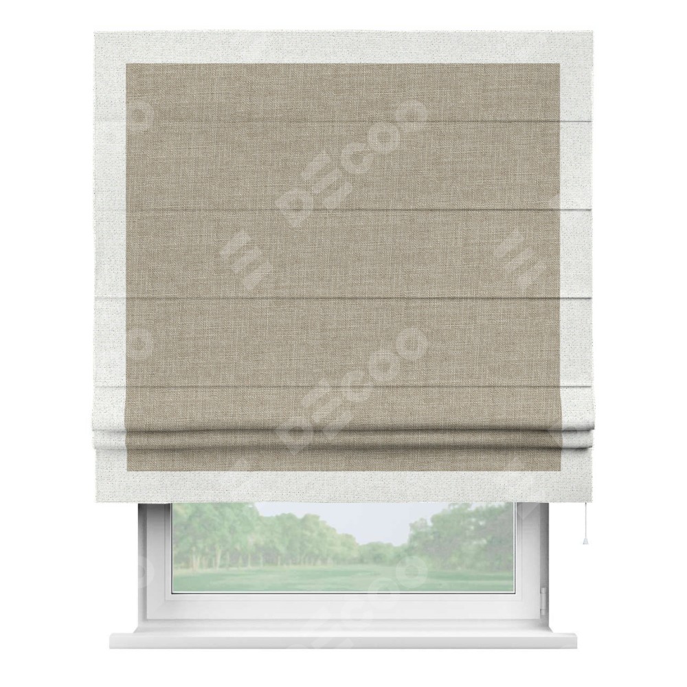 Римская штора «Кортин» для проёма, лён бежевый, с кантом Чесс