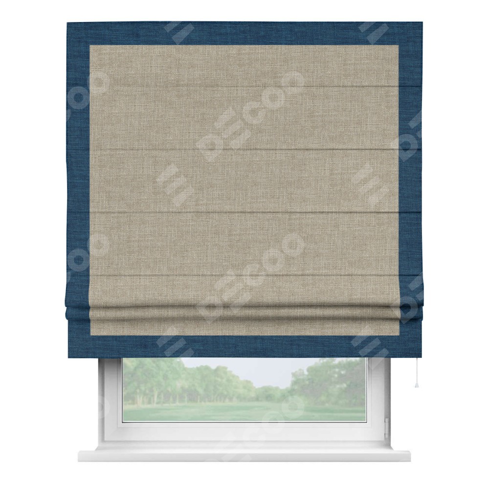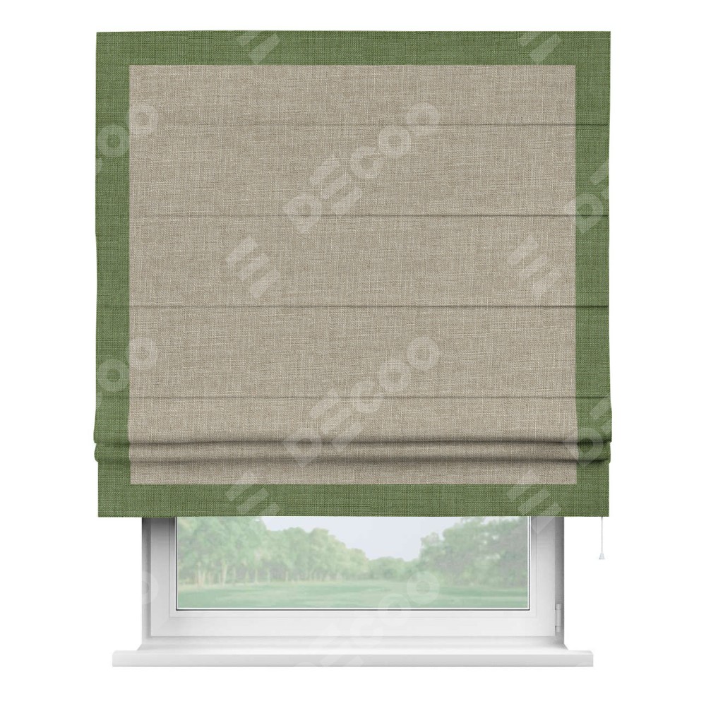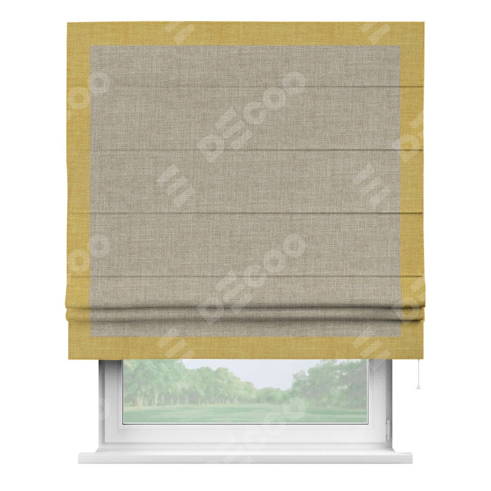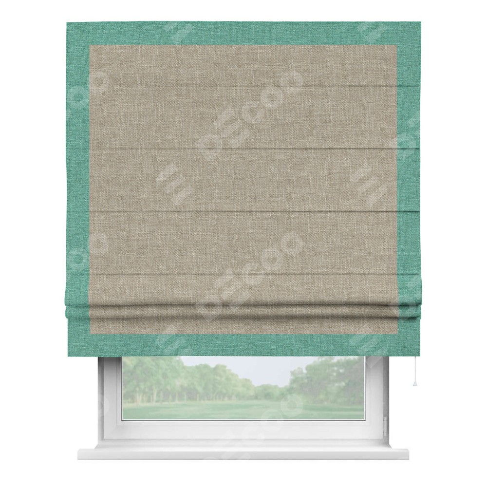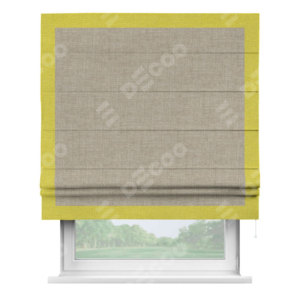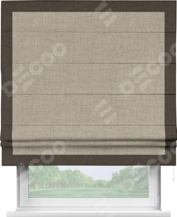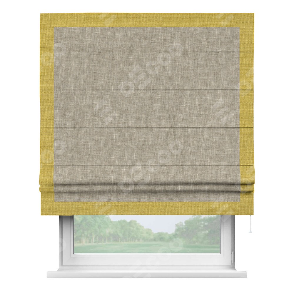 Римская штора «Кортин» для проёма, лён бежевый, с кантом Чесс