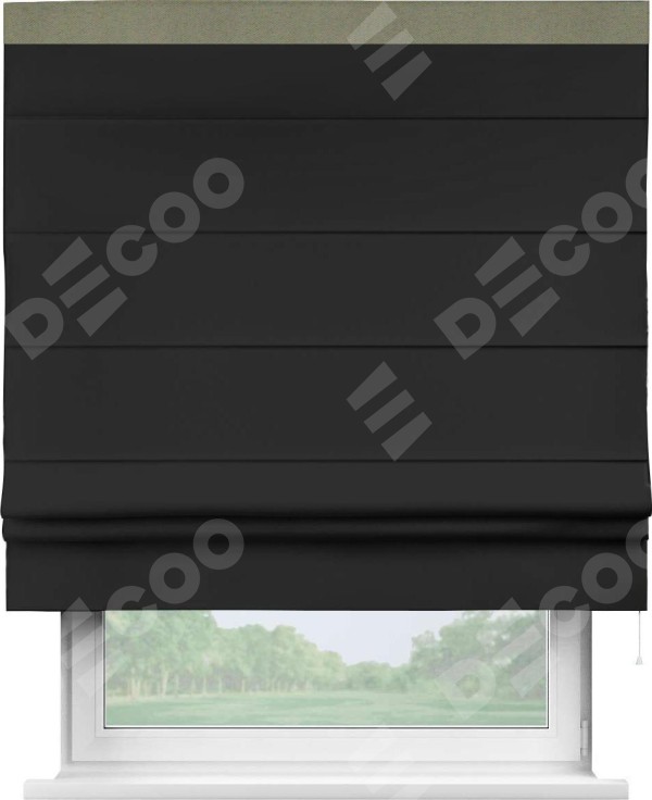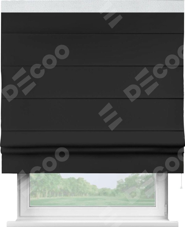 Римская штора «Cortin» для проёма, блэкаут однотонный черный с кантом Кинг