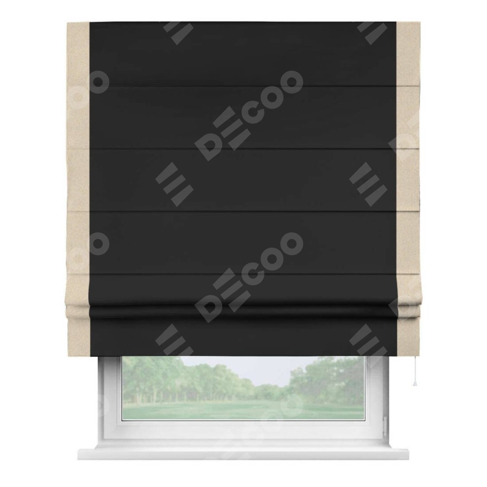 Римская штора «Cortin» для проёма, блэкаут однотонный черный с кантом Стрим Дуо
