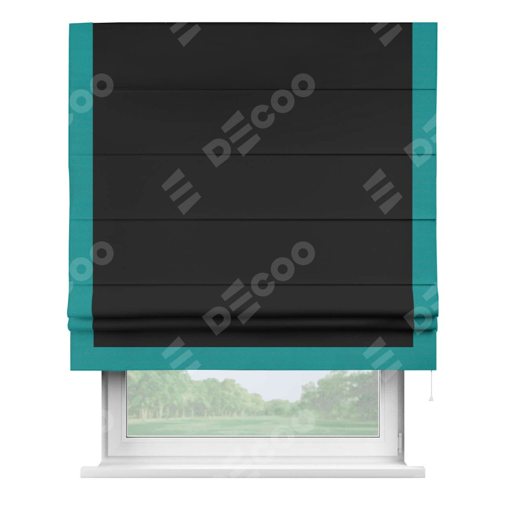 Римская штора «Cortin» для проёма, блэкаут однотонный черный с кантом Виктория