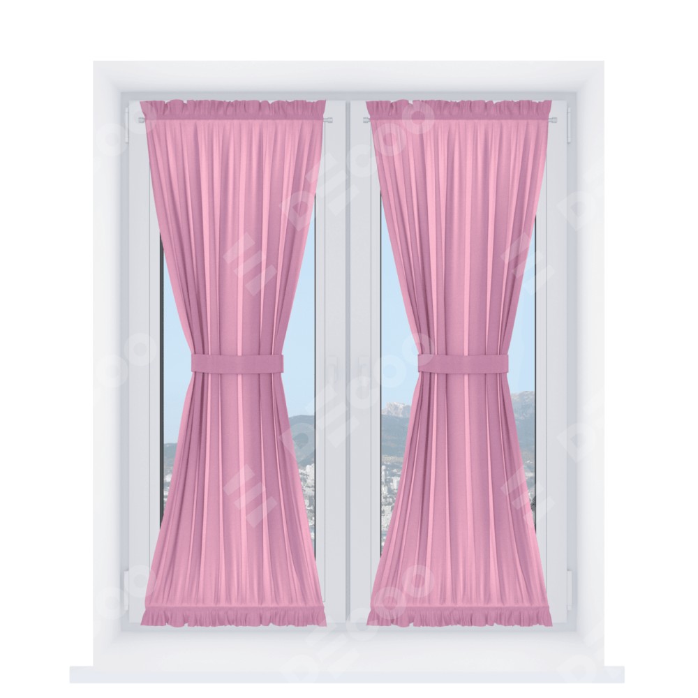 Штора «Песочные часы» производителя «Cortin», используется для створок окон и дверей, пошита из ткани лён димаут розовый, артикул ткани 16257.