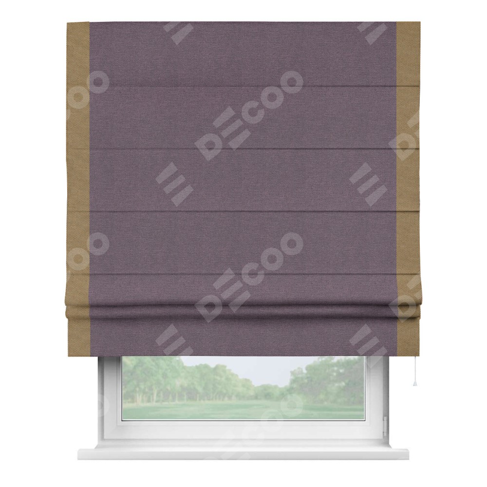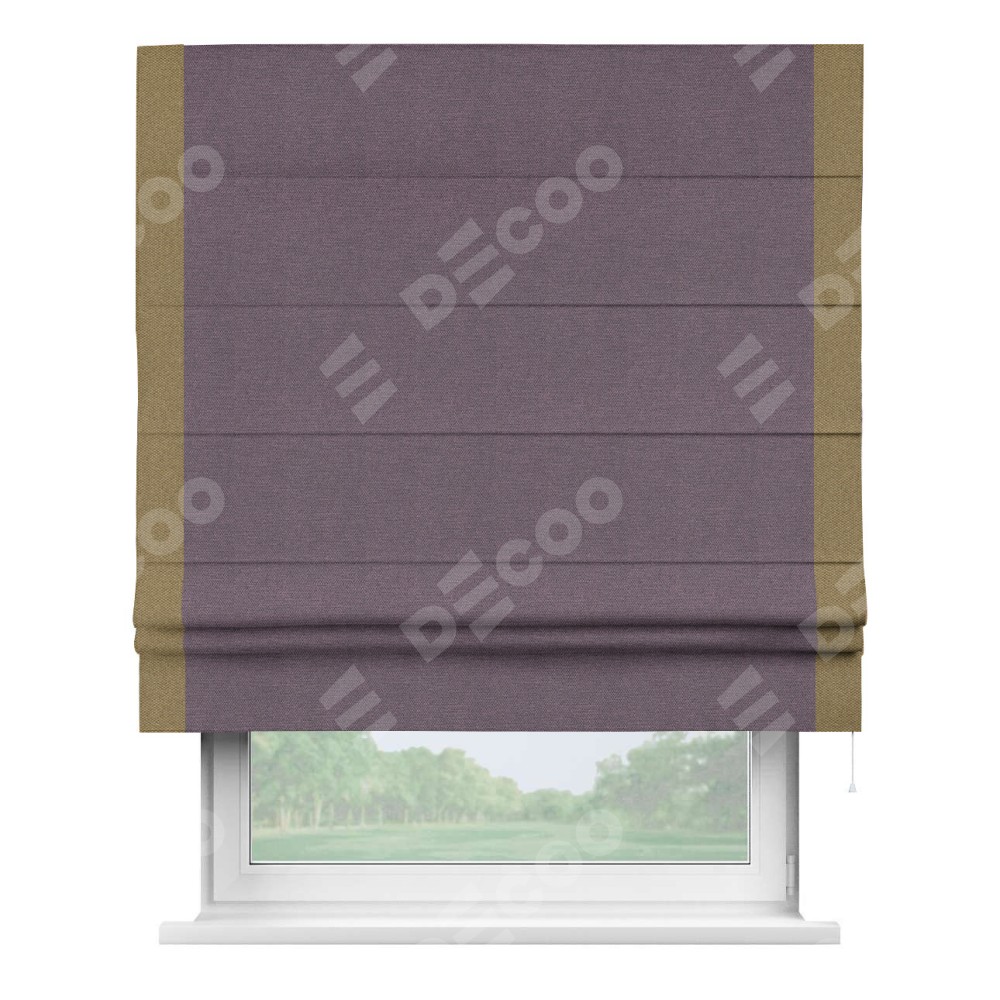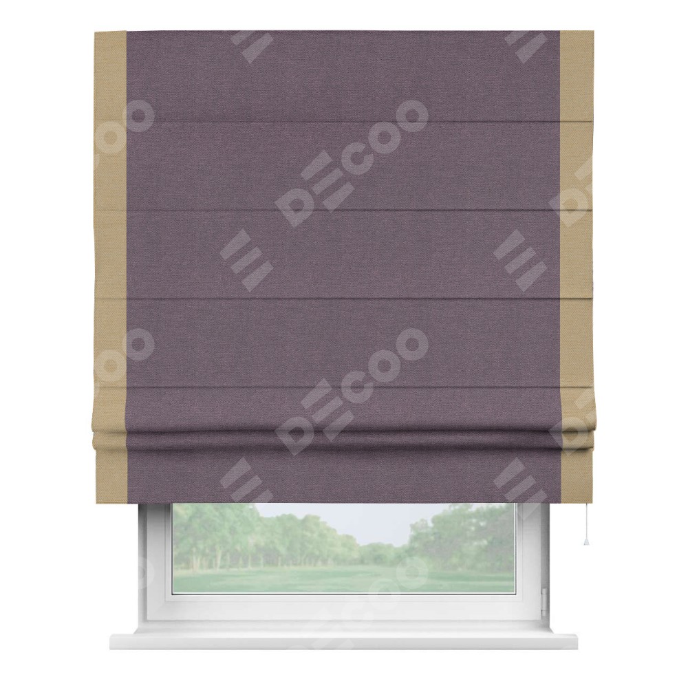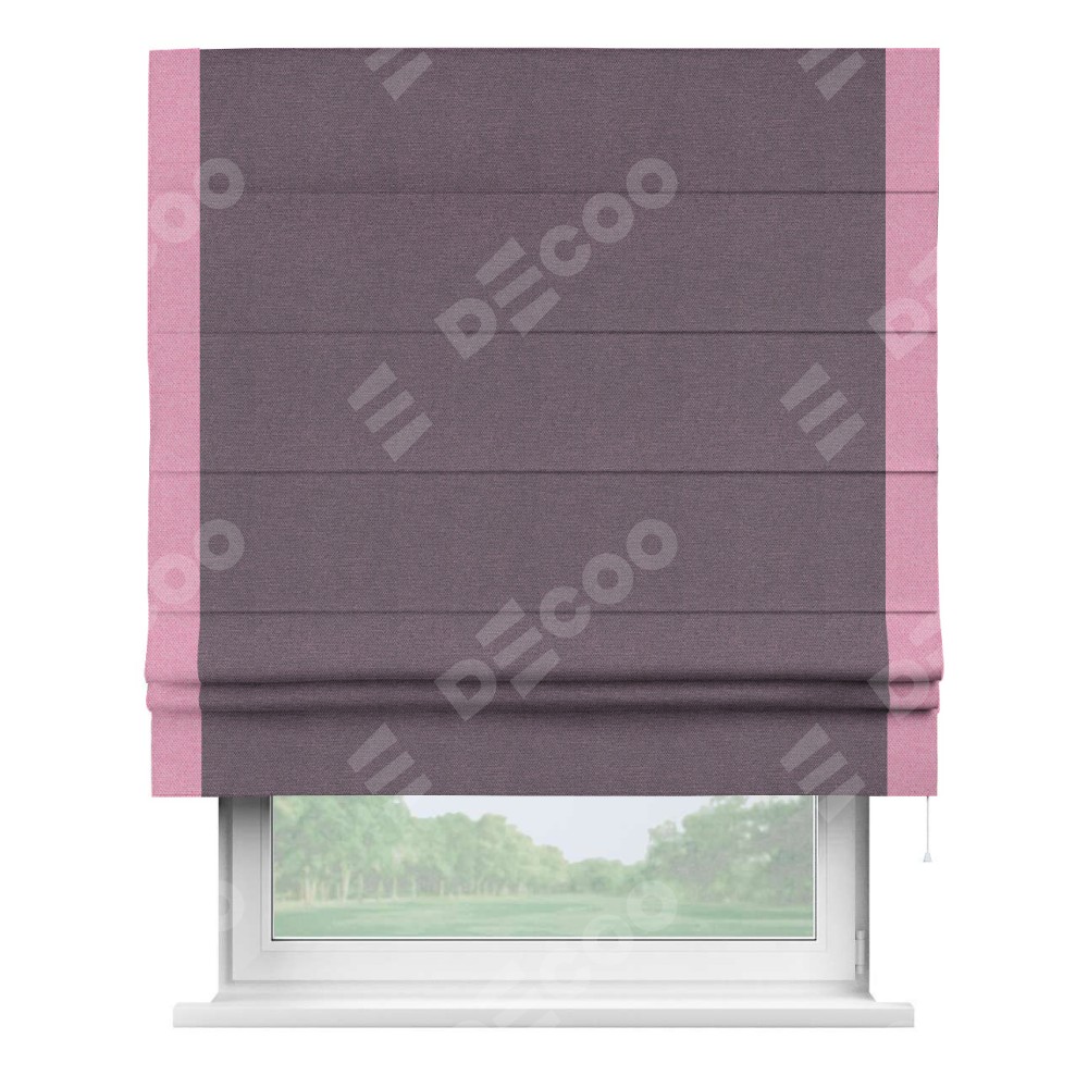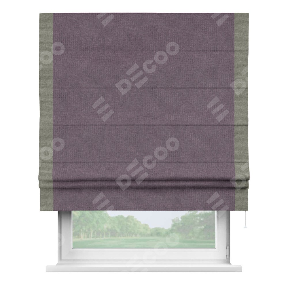 Римская штора «Кортин» с кантом Стрим Дуо, для проема, ткань лён димаут, светло-фиолетовый