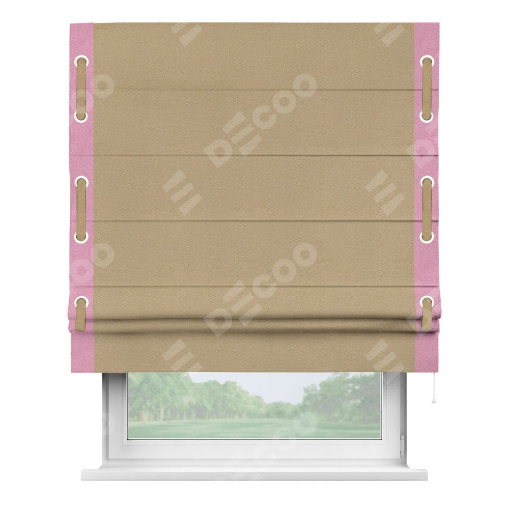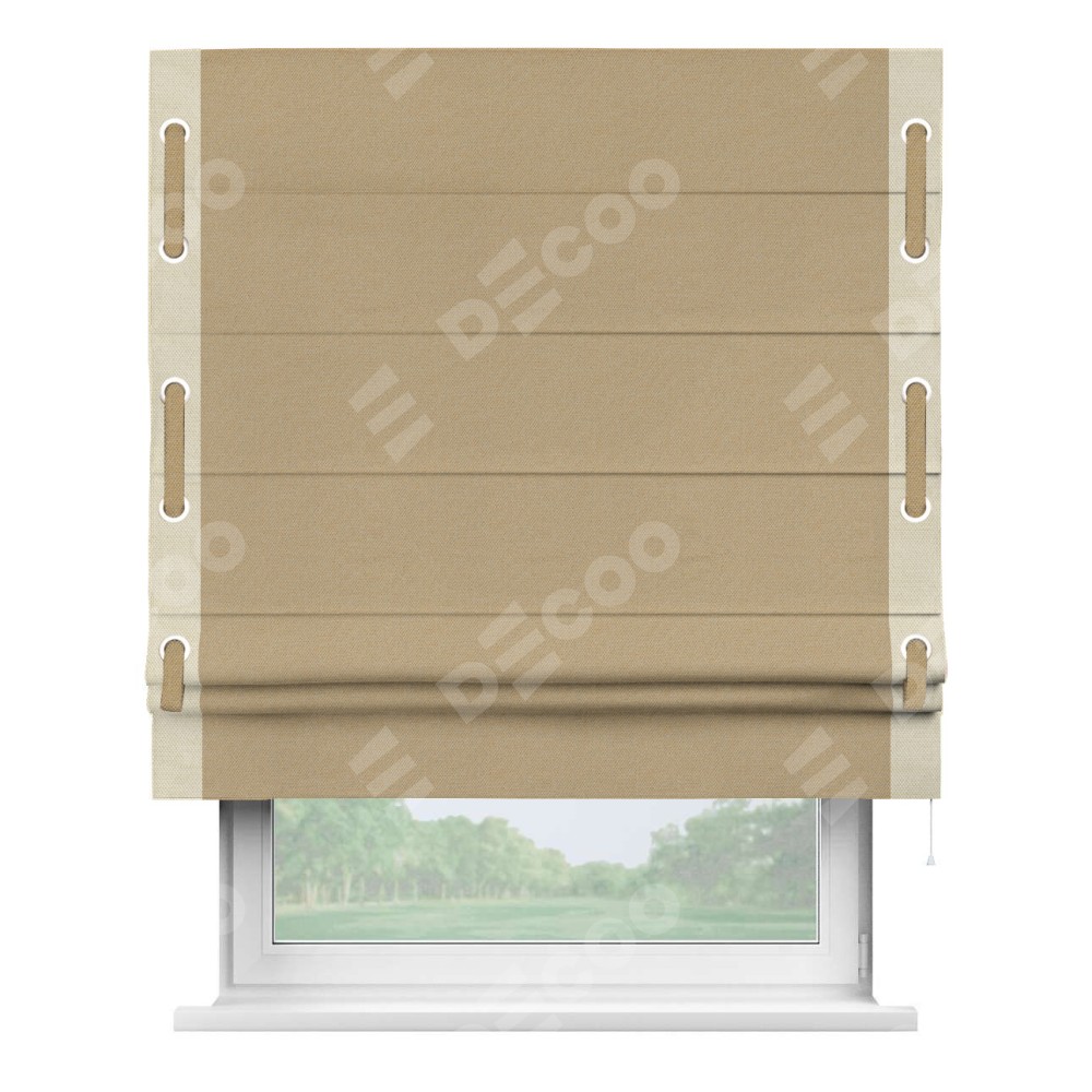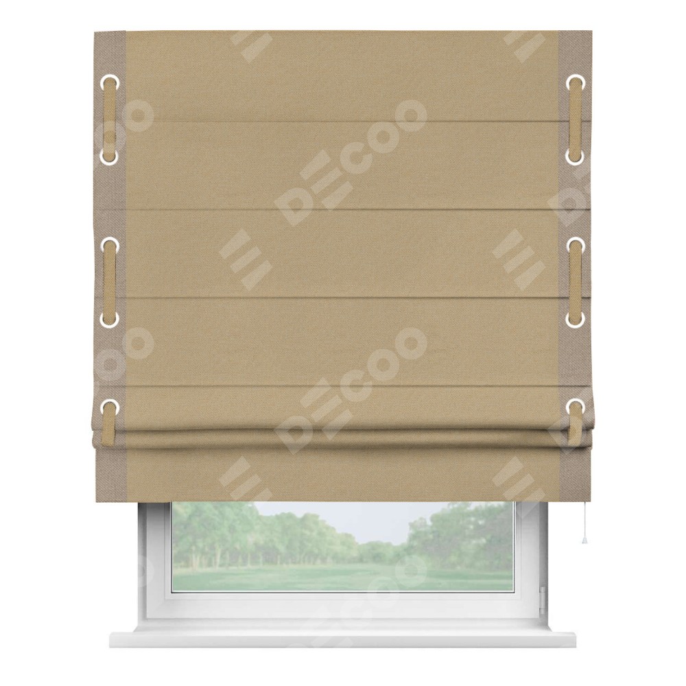 Римская штора «Кортин» с кантом Стрим Дуо (люверсы с пояском), для проема, ткань лён димаут, тёмно-бежевый