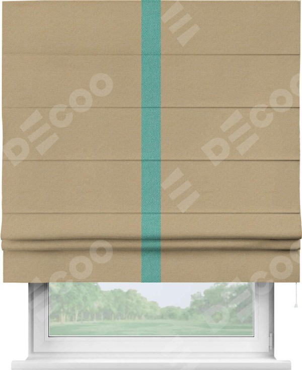 Римская штора производителя «Cortin», используется для проёма, пошита из ткани лён димаут тёмно-бежевый, артикул 83 037. Отделка шторы кантом «Хайвэй», ткань для канта используется из льна димаут разной расцветки на выбор. Имеет универсальный механизм и подходит для монтажа: на потолок, на стену и в нишу.