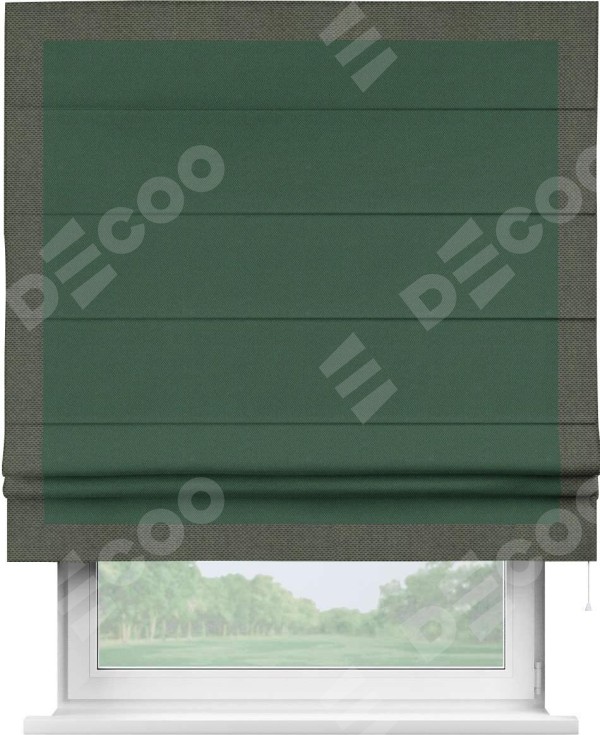 Римская штора «Кортин» с кантом Чесс, для проема, ткань лён димаут, тёмно-зелёный