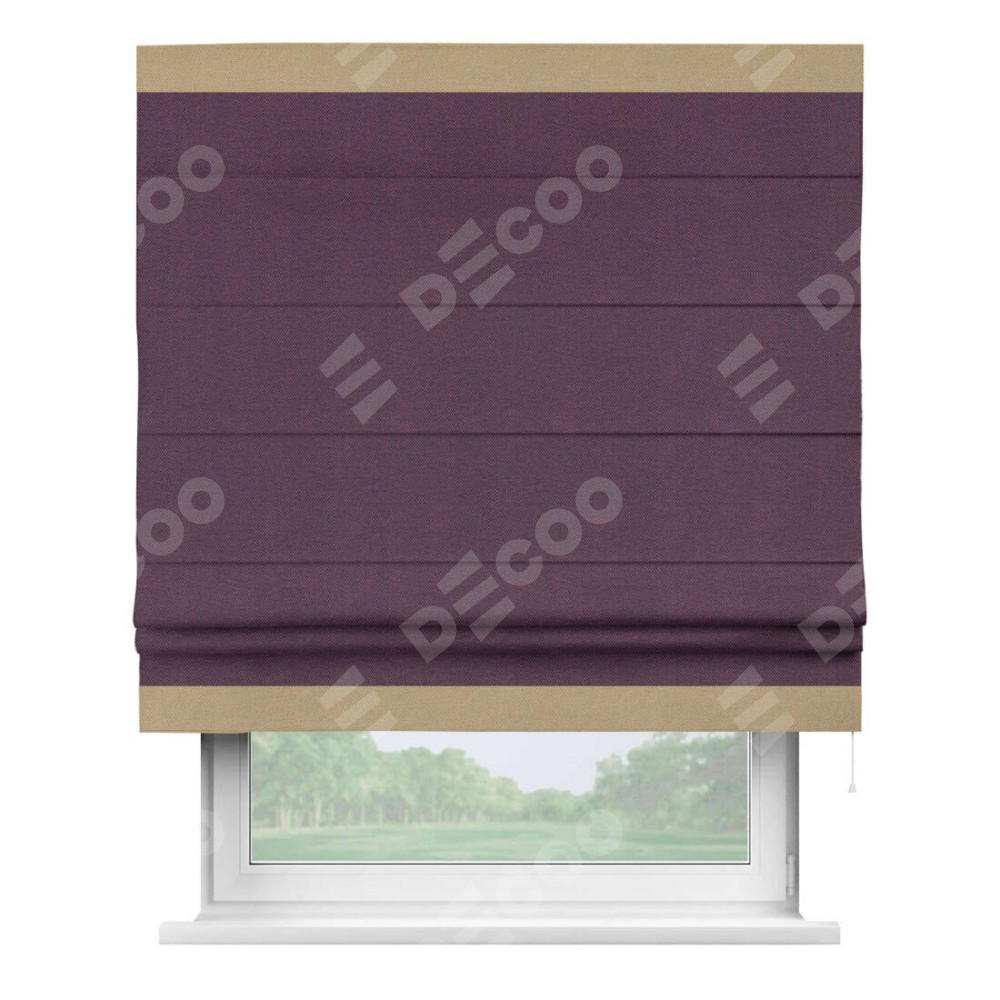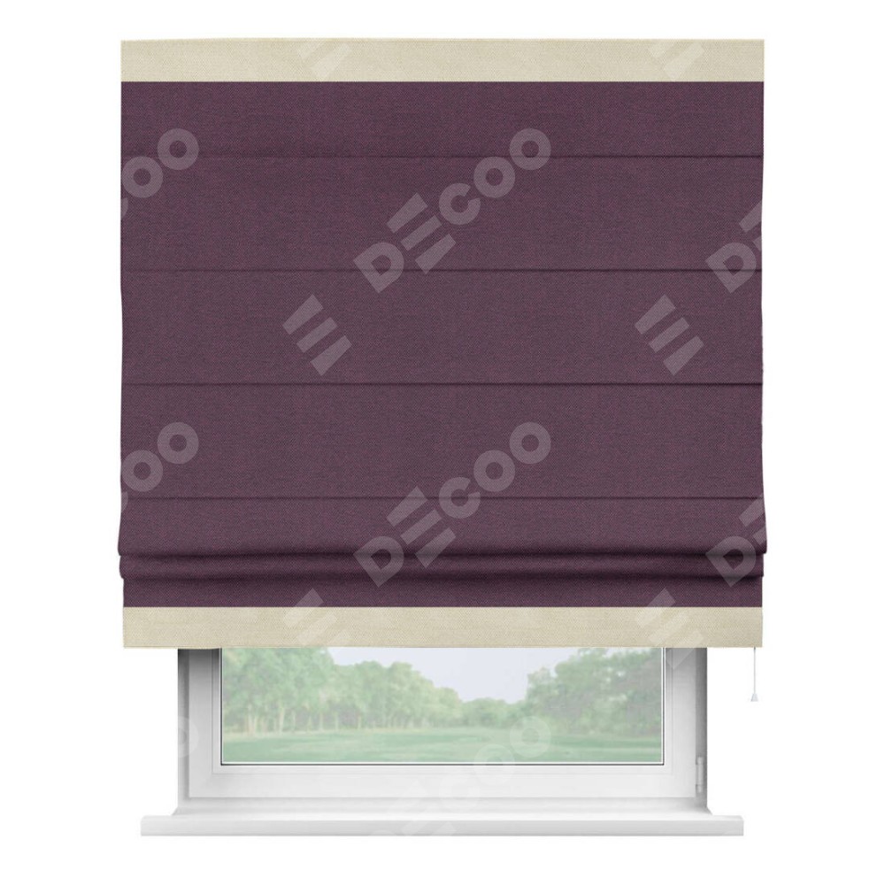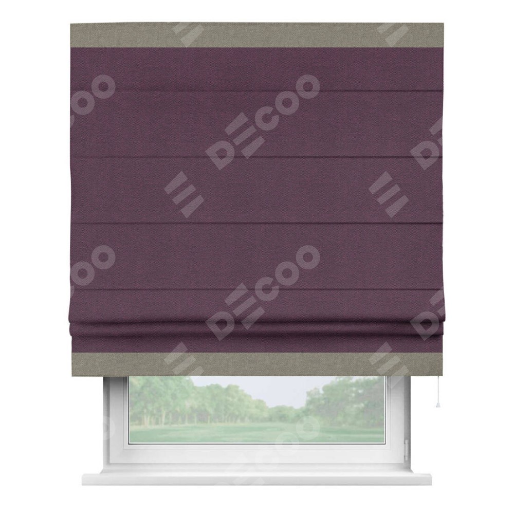 Римская штора «Кортин» с кантом Горизонт, для проема, ткань лён димаут, фиолетовый