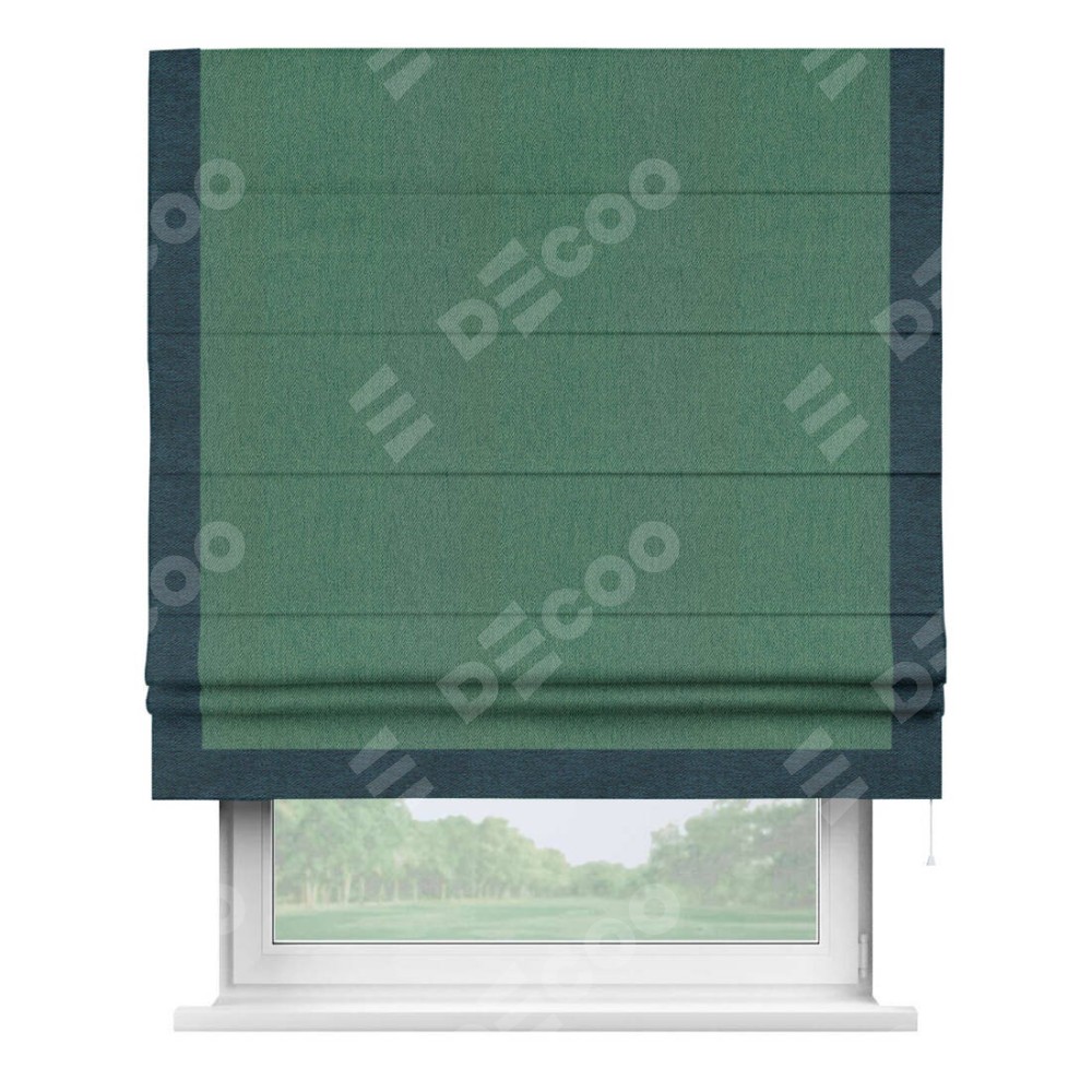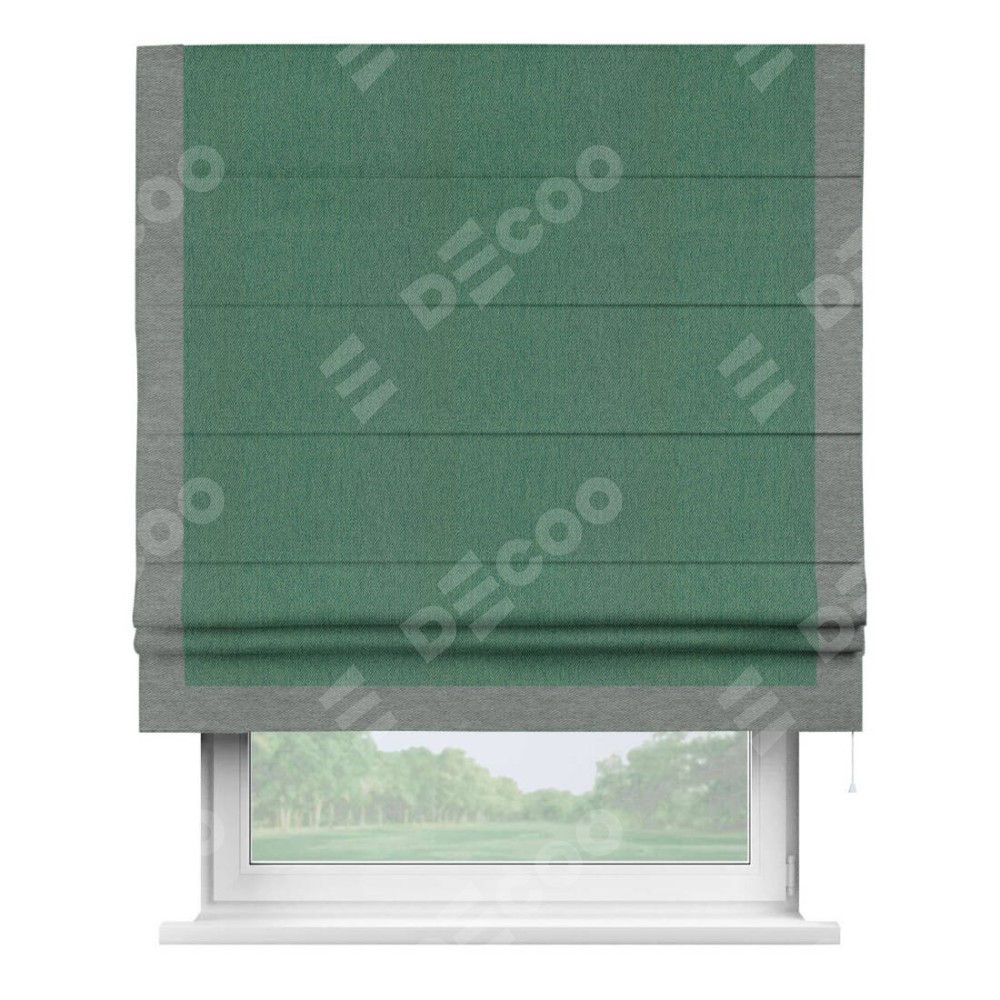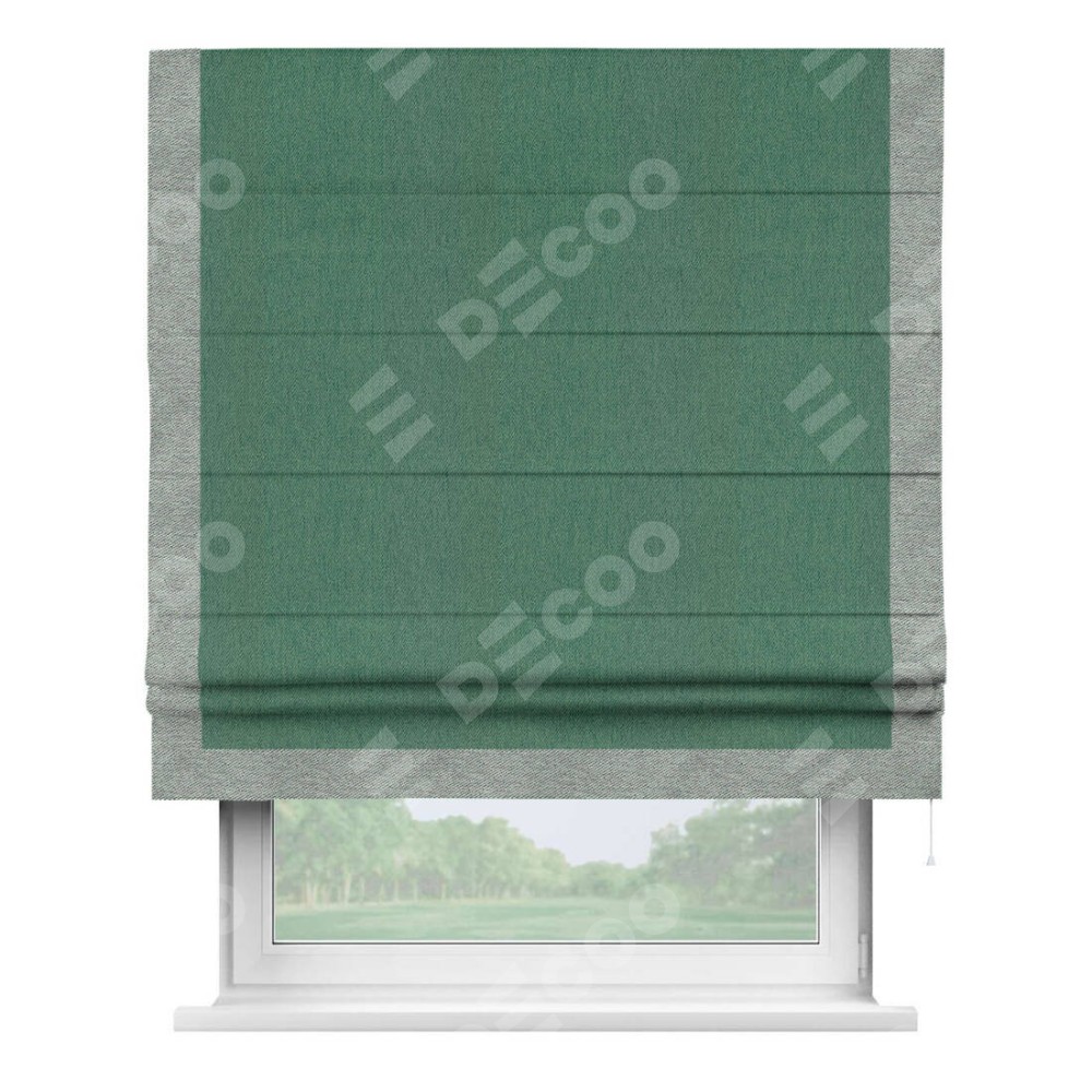 Римская штора «Кортин» с кантом Виктория, для проема, ткань твид блэкаут, зелёный