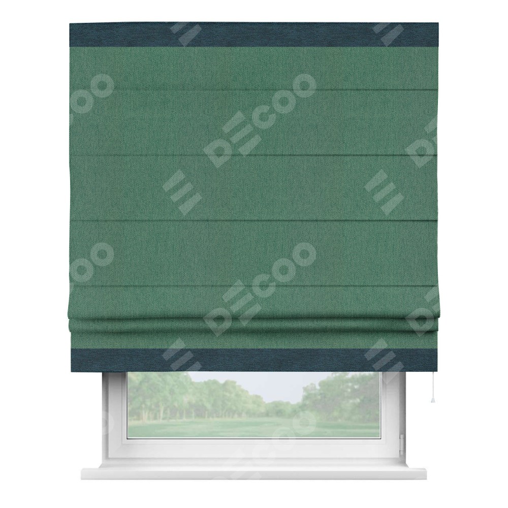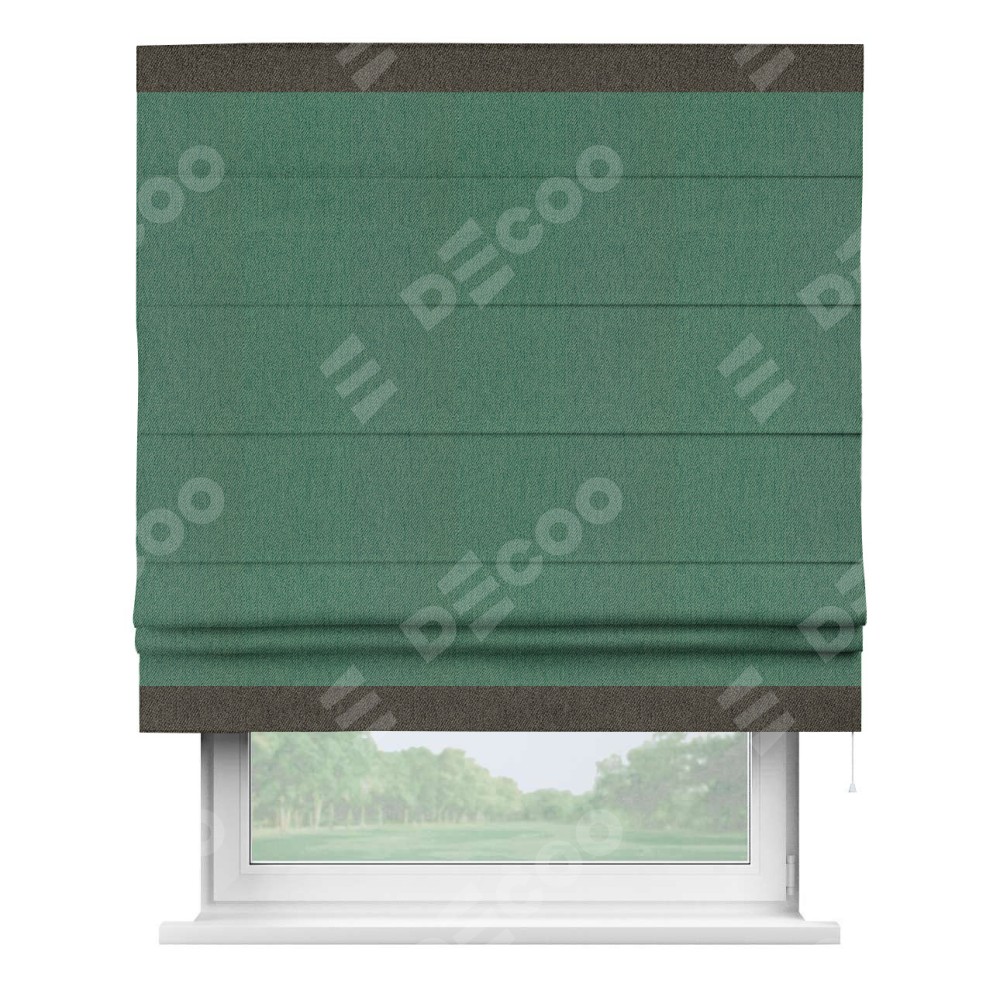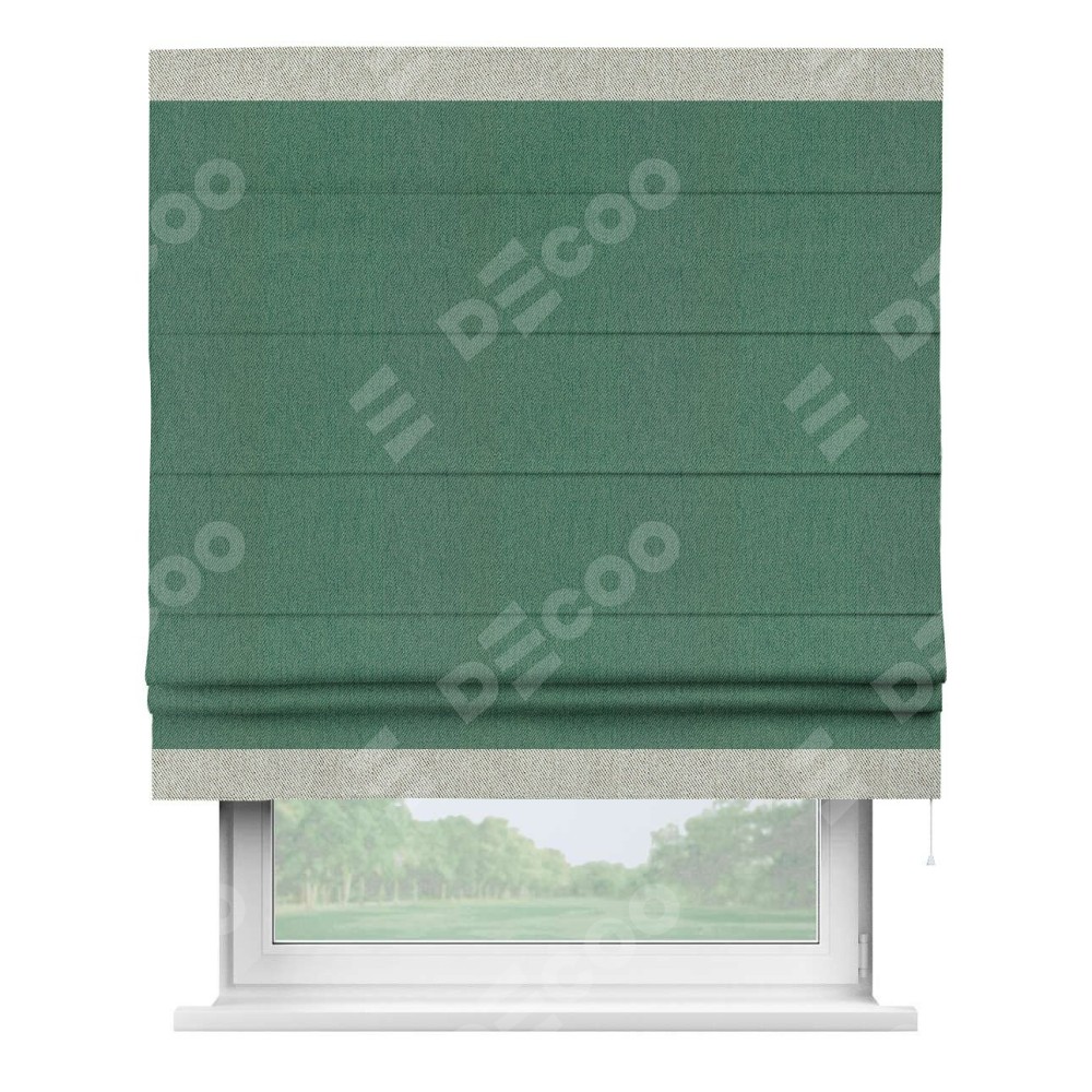 Римская штора «Кортин» с кантом Горизонт, для проема, ткань твид блэкаут, зелёный