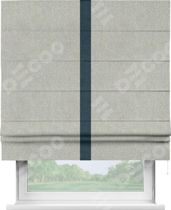 Римская штора производителя «Cortin», используется для проёма, пошита из ткани твид блэкаут коричнево-серый, артикул 21574. Отделка шторы кантом «Хайвэй», ткань для канта используется из твида разной расцветки на выбор. Имеет универсальный механизм и подходит для монтажа: на потолок, на стену и в нишу.