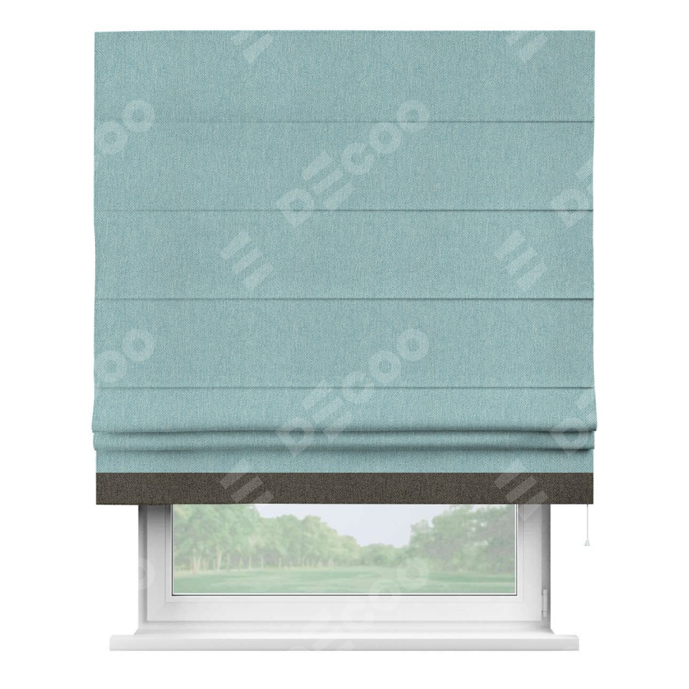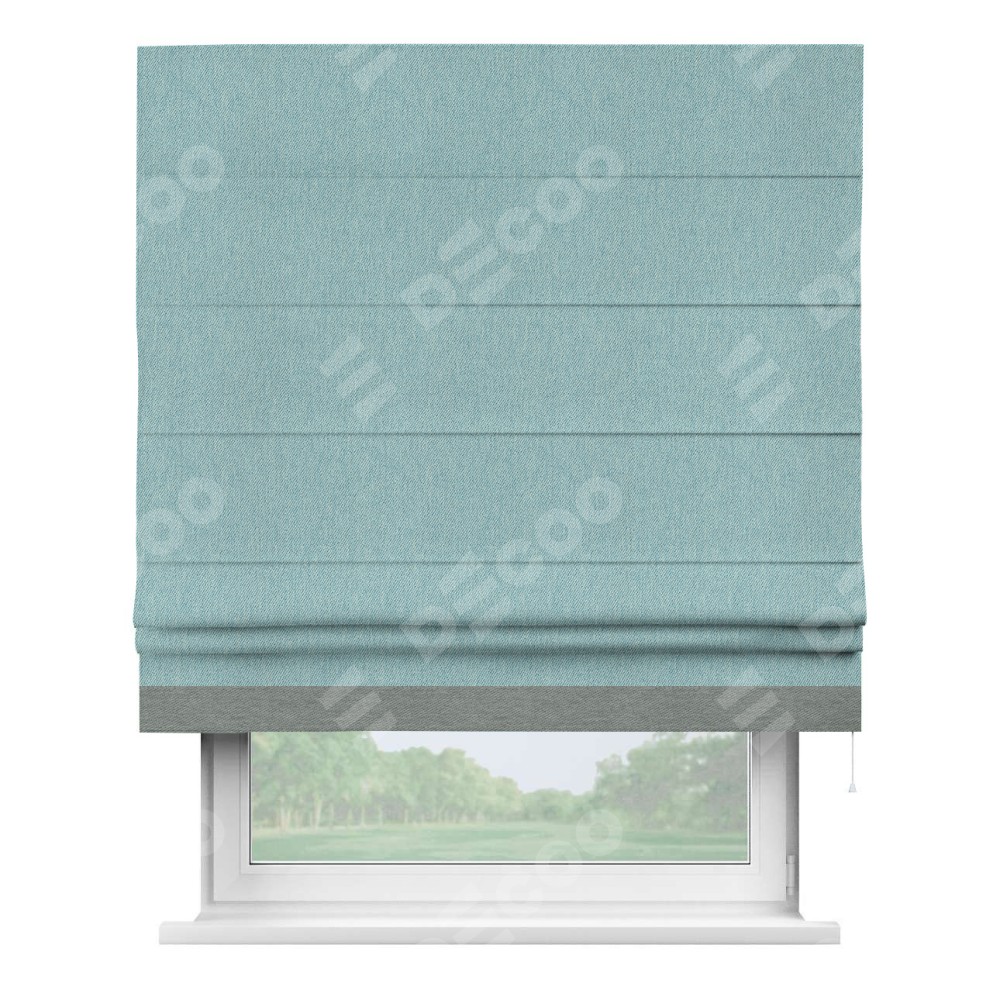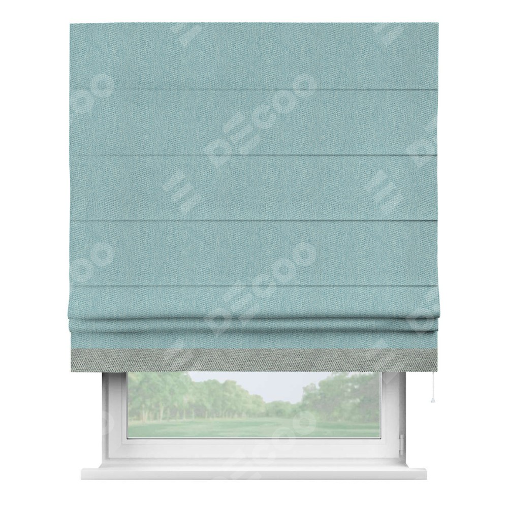 Римская штора «Кортин» с кантом Джестер, для проема, ткань твид блэкаут, небесно-голубой