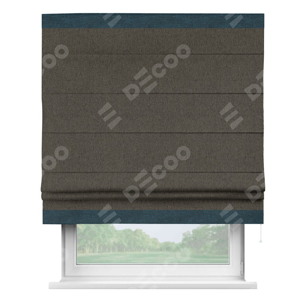 Римская штора «Кортин» с кантом Горизонт, для проема, ткань твид блэкаут, тёмно-коричневый