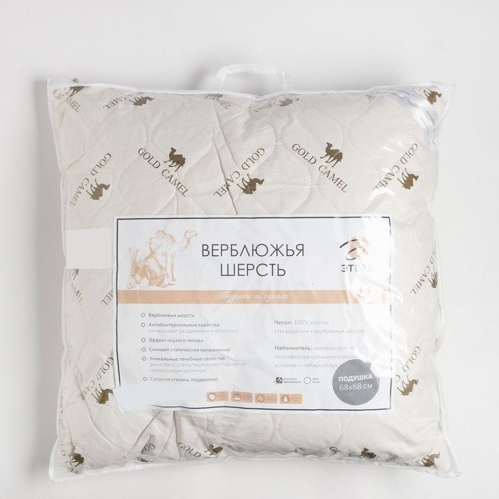 Нежная, удобная и такая красивая подушка «Этель» Верблюжья шерсть подарит вам только добрые сновидения и по-настоящему прекрасное утро.