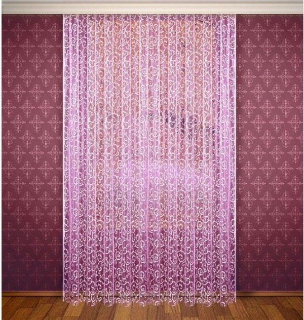 Штора, ширина 300 см, высота 280 см, с шторной лентой, цвет фиолетово-розовый