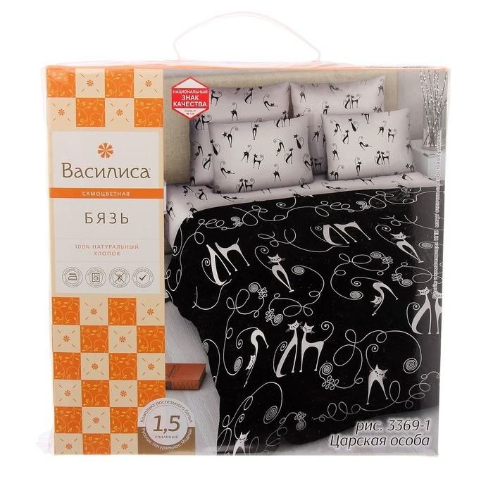 Постельное бельё 1,5 сп. «Василиса» Царская особа, 145×215 см, 150×214 см, 70×70 см — 2 шт.