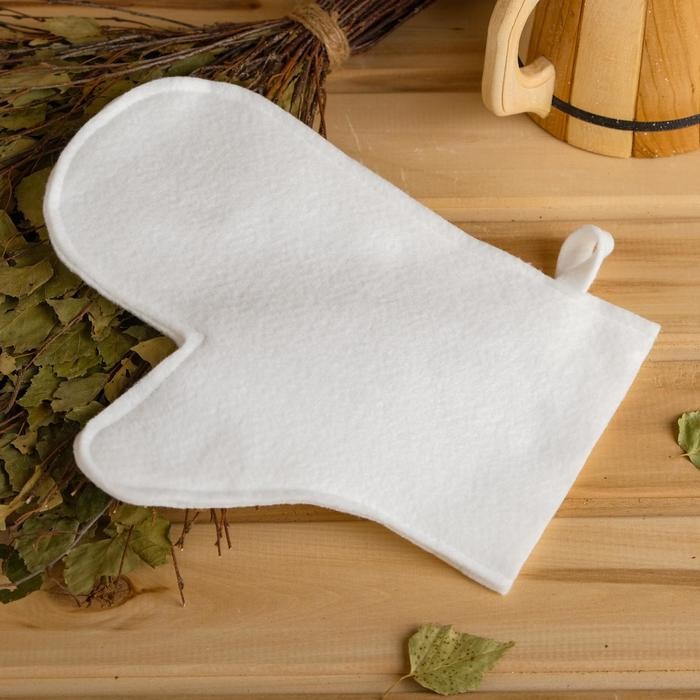 Рукавица для бани войлок белый