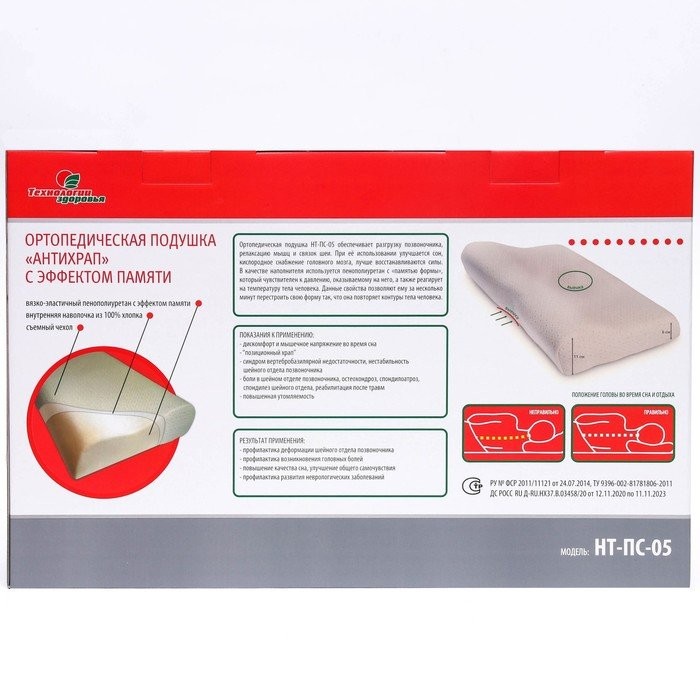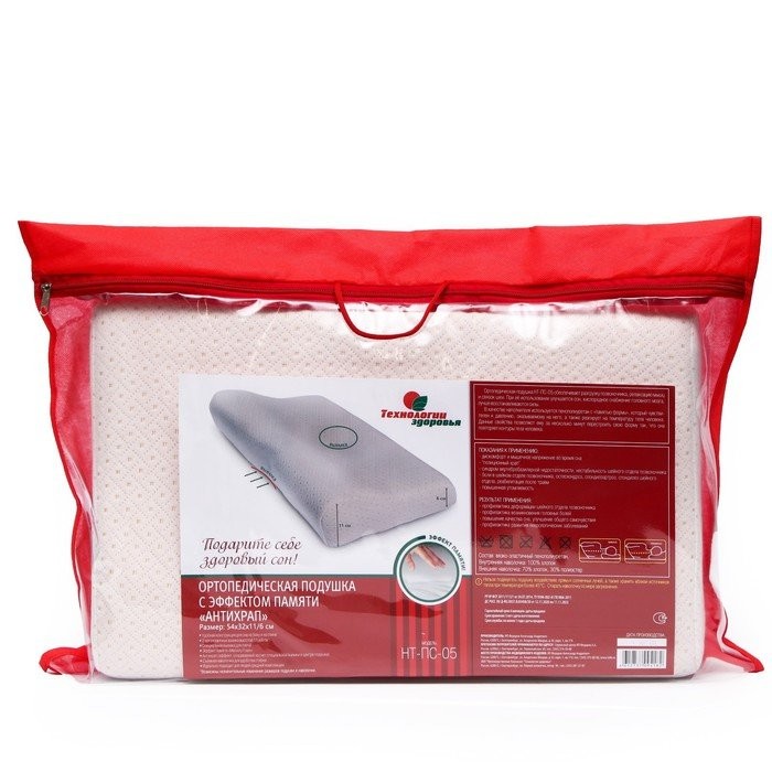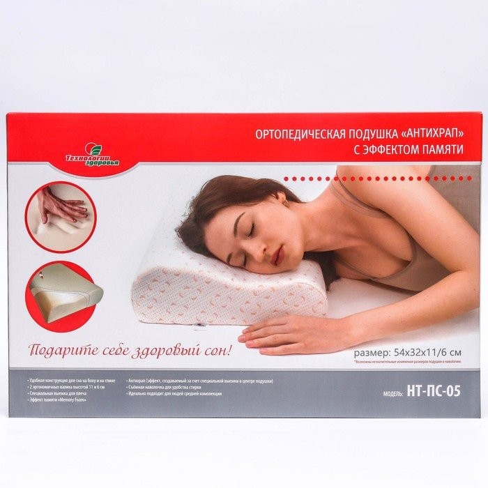 Подушка ортопедическая НТ-ПС-05 «Антихрап», для взрослых, с эффектом памяти и выемкой под плечо, 54×32 см, валики 11/6 см