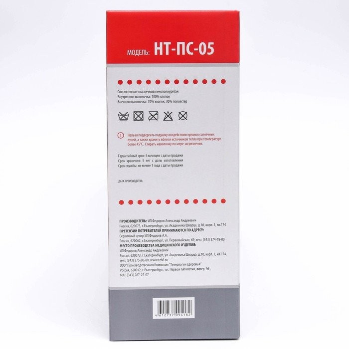 • Внешняя наволочка: хлопок (70%), полиэстер (30%).