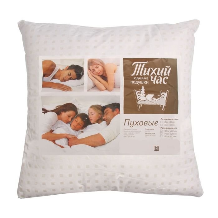 Подушка высокая Тихий Час Пуховые, размер 68×68 см, тик — модель, в качестве наполнителя которой используется серый гусиный пух, прошедший тщательную обработку. Именно поэтому изделие: