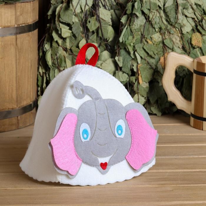 Шапка для бани с детской аппликацией «Слонёнок» войлок