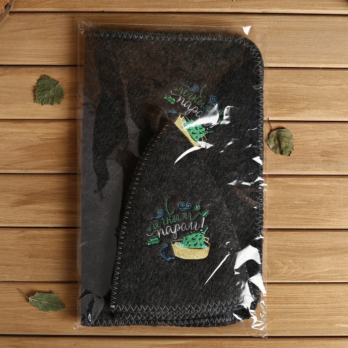 Банный набор вышивка шапка, коврик и рукавица «С легким паром!»
