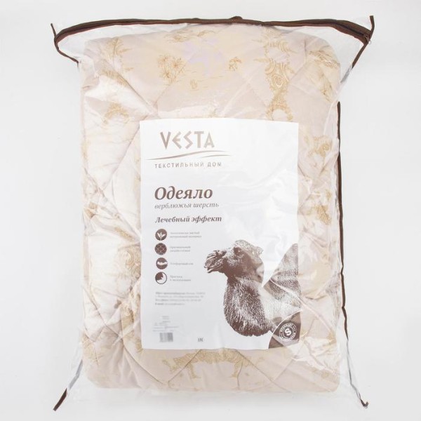 Одеяло зимнее 172×205 см, шерсть верблюда, ткань глосс-сатин, п/э 100%