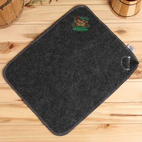 Банный коврик-лежак из войлока с оригинальной вышивкой отлично впитывает влагу и защищает тело от жара полок. Аксессуар выполняет также и гигиеническую функцию, что немаловажно при походах в общественные заведения. Лежак пригодится поклонникам классической русской бани и тем, кто предпочитает сухой жар финской сауны.