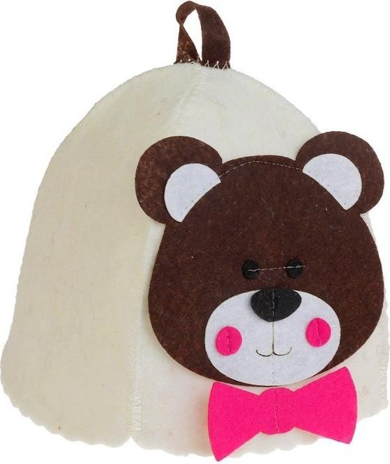 Шапка для бани с детской аппликацией «Медвежонок» войлок