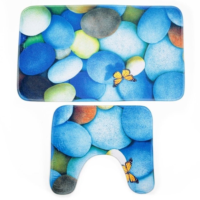Набор ковриков для ванны и туалета Доляна «Камни», 2 шт, 38×45, 43×73 см
