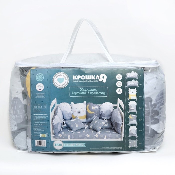 Бортики в кроватку Крошка Я «Dream Big» (60х42см-2шт, 30х42см-4шт, 30х30см-4шт), 100% хлопок